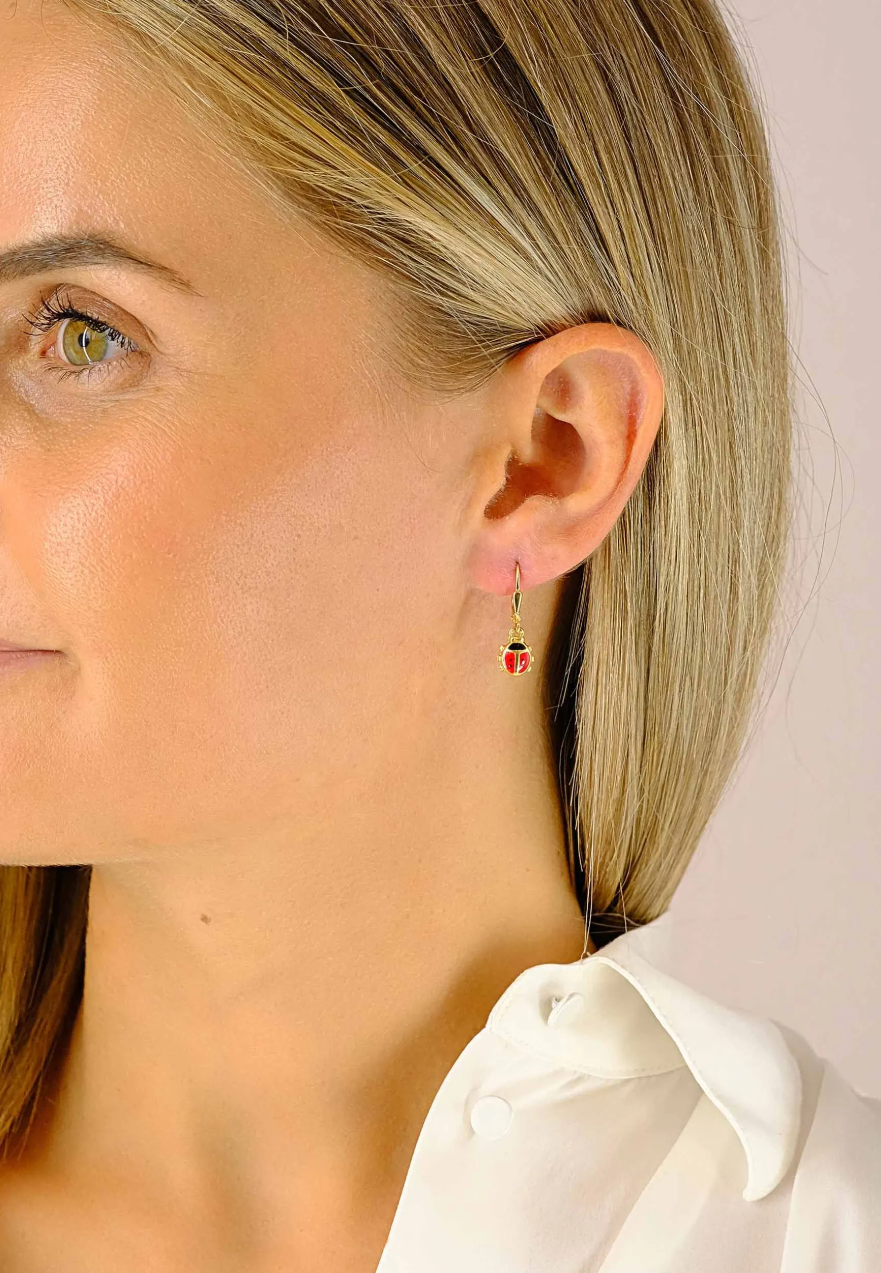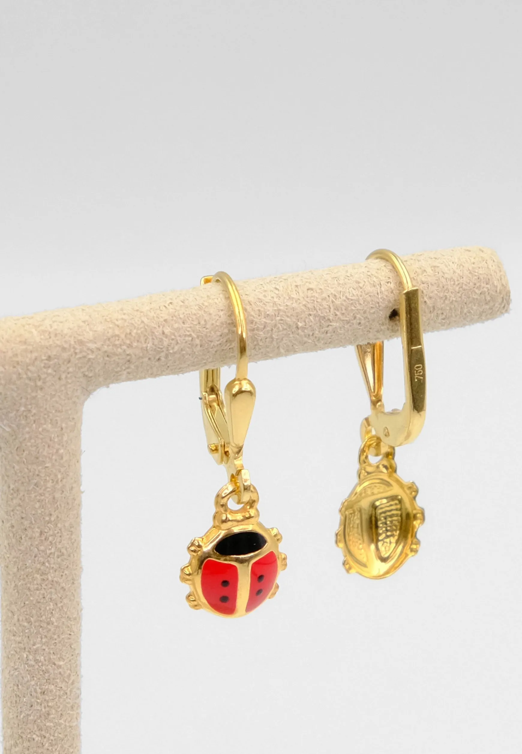 Ohrhänger mit Patentbrisuren Glückskäfer Gelbgold 750, 24x7mm