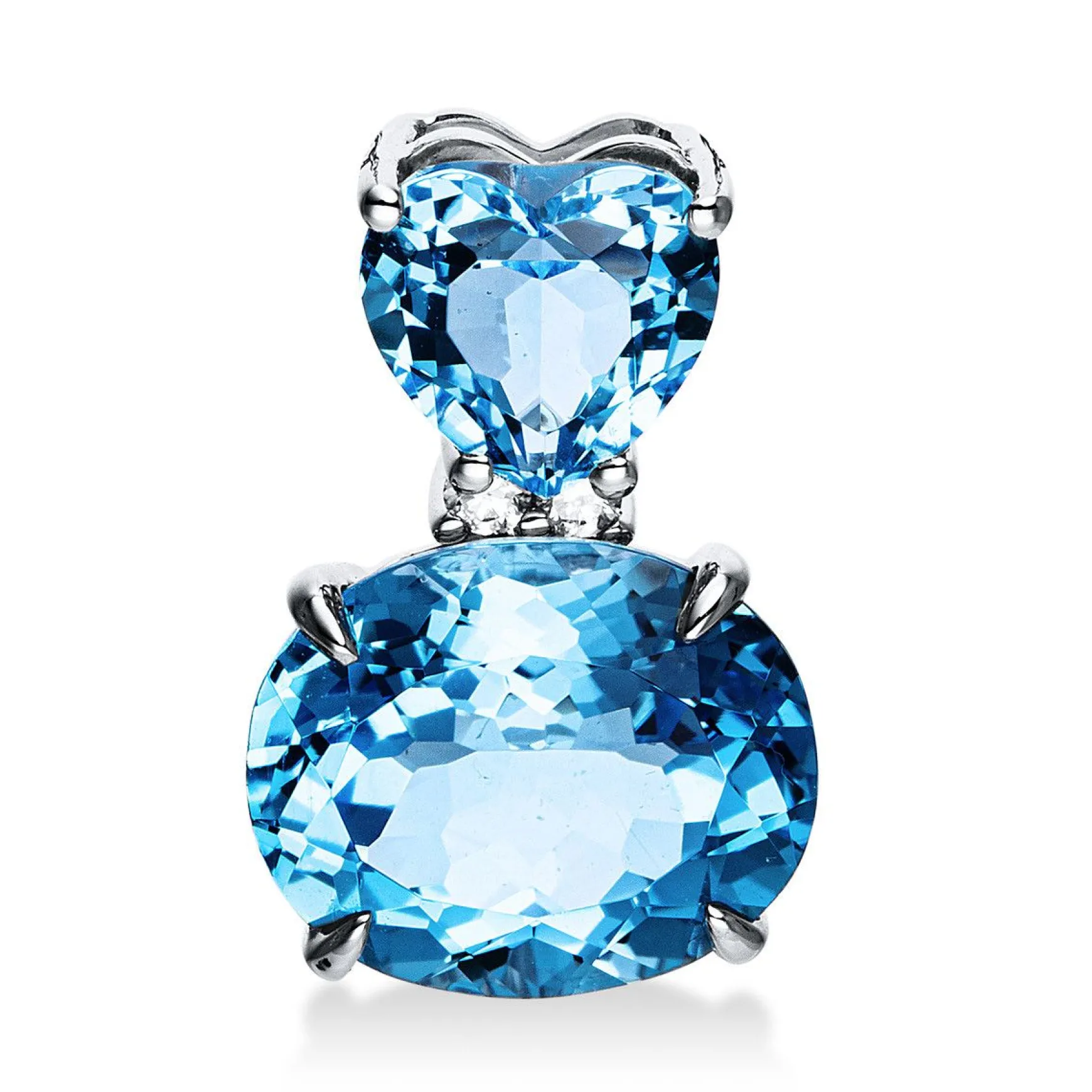 Anhänger 4er-Krappe 18 kt WG, 2 Brillanten 0,05 ct, TW-si, 1 Topas 4,70 ct blau, 1 Topas 1,40 ct blau, H:16,9 mm, B:10,9 mm