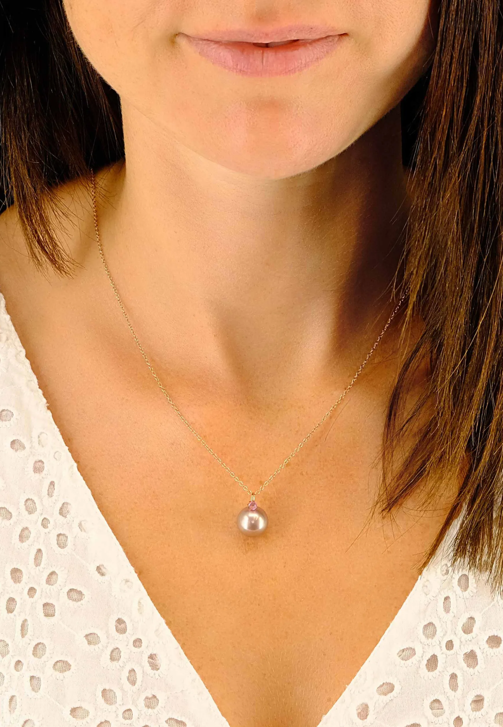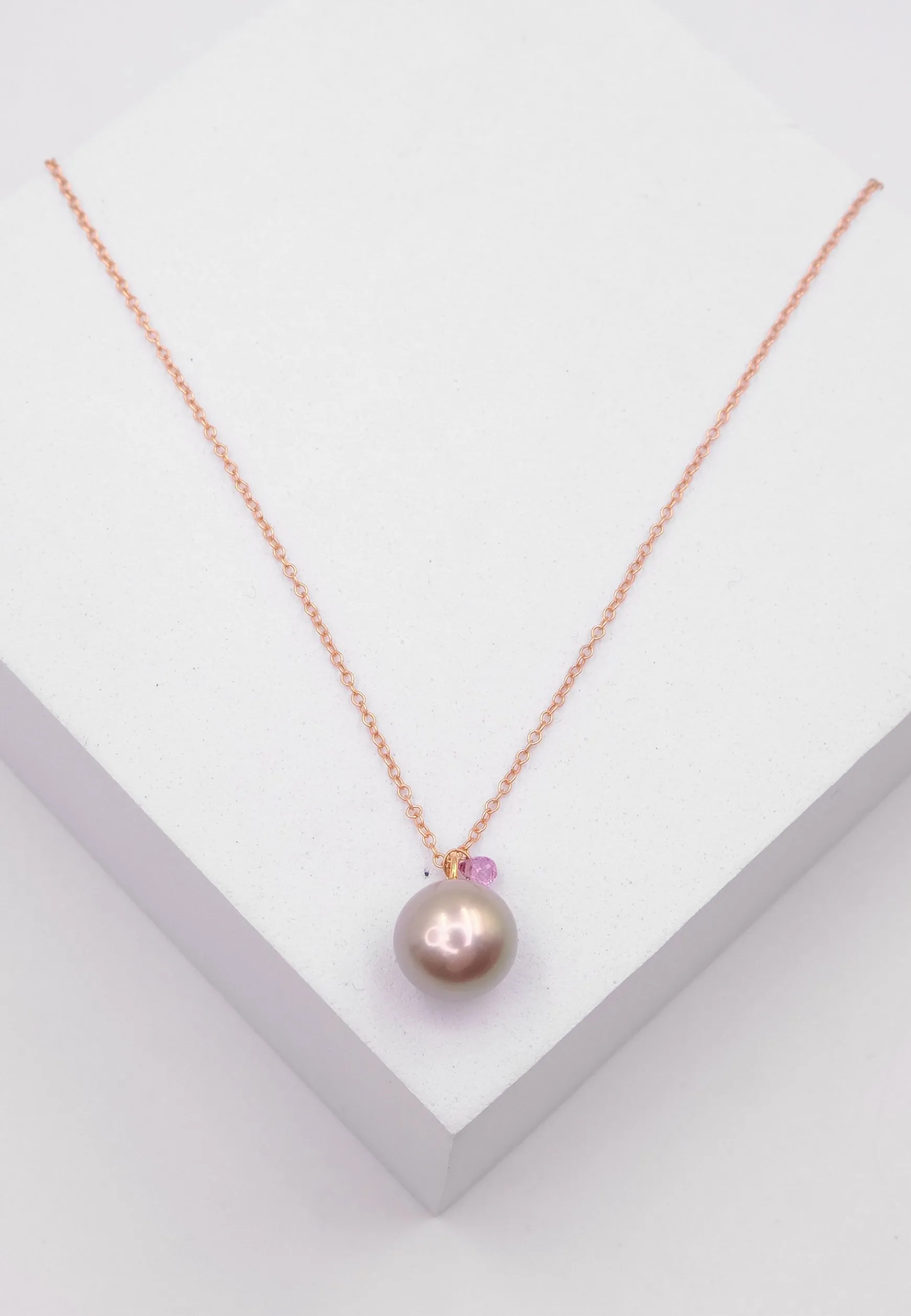 Anhänger Roségold 750 Süsswasserperle 10-11mm Saphir