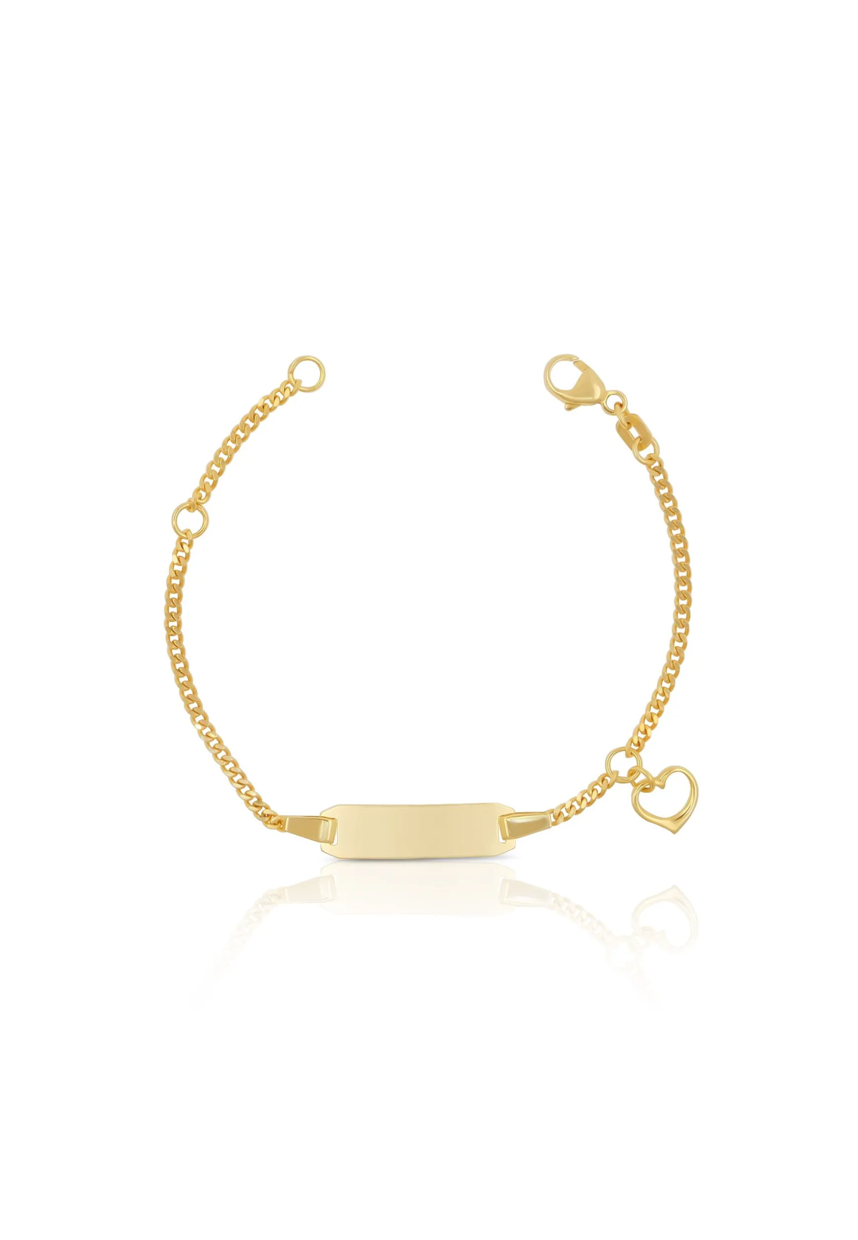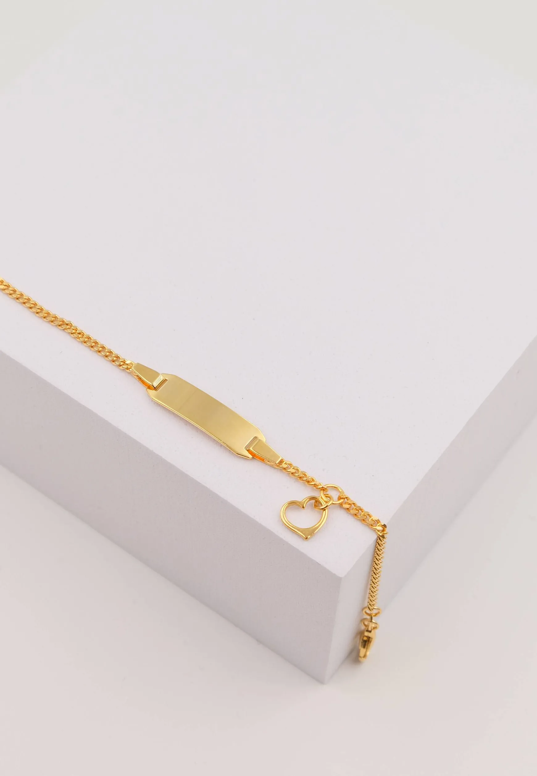 Bébé Bracelet Panzer Gelbgold 750, 14cm Herzanhänger Gravurplatte 2.1cm