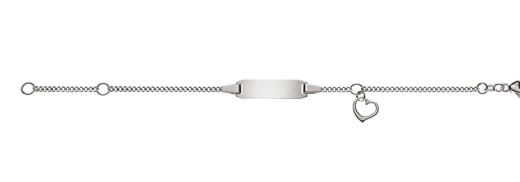 Bébé Bracelet Panzer Weissgold 750, 14cm Herzanhänger Gravurplatte 2.1cm
