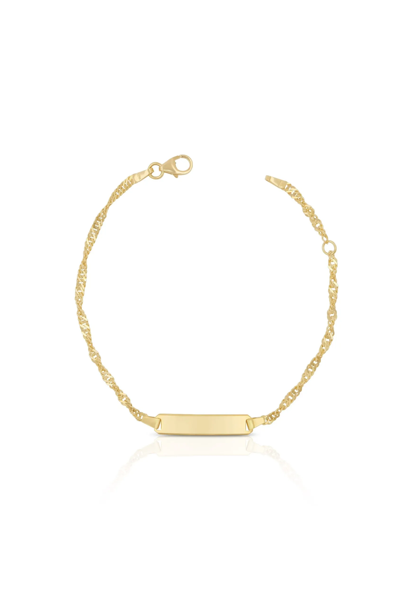 Schmuck in den schönsten Farben und Formen hier sichern. Bébé Bracelet Singapur Gelbgold 750 14cm mit Gravurplatte rechteckig lang ca. 2.4cm kann man ganz einfach Freunden verschenken oder sich selbst. Passend zum Armschmuck können Armketten wie Anker oder Venezianer ergänzt werden. Bébé Bracelet Singapur Gelbgold 750 14cm mit Gravurplatte rechteckig lang ca. 2.4cm bequem und einfach hier sichern. Ein schönes Geschenk zu jedem Anlass. Schmuck online kaufen, nichts einfach als hier.