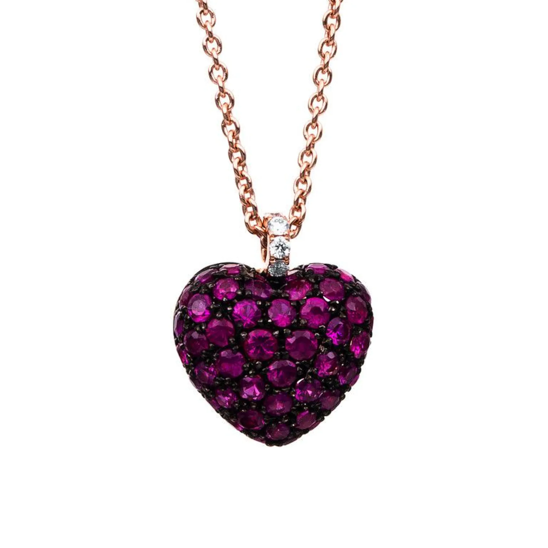 Collier 585/14K Roségold Herz Diamant 0.03ct. Rubin 0.83ct. 41 cm