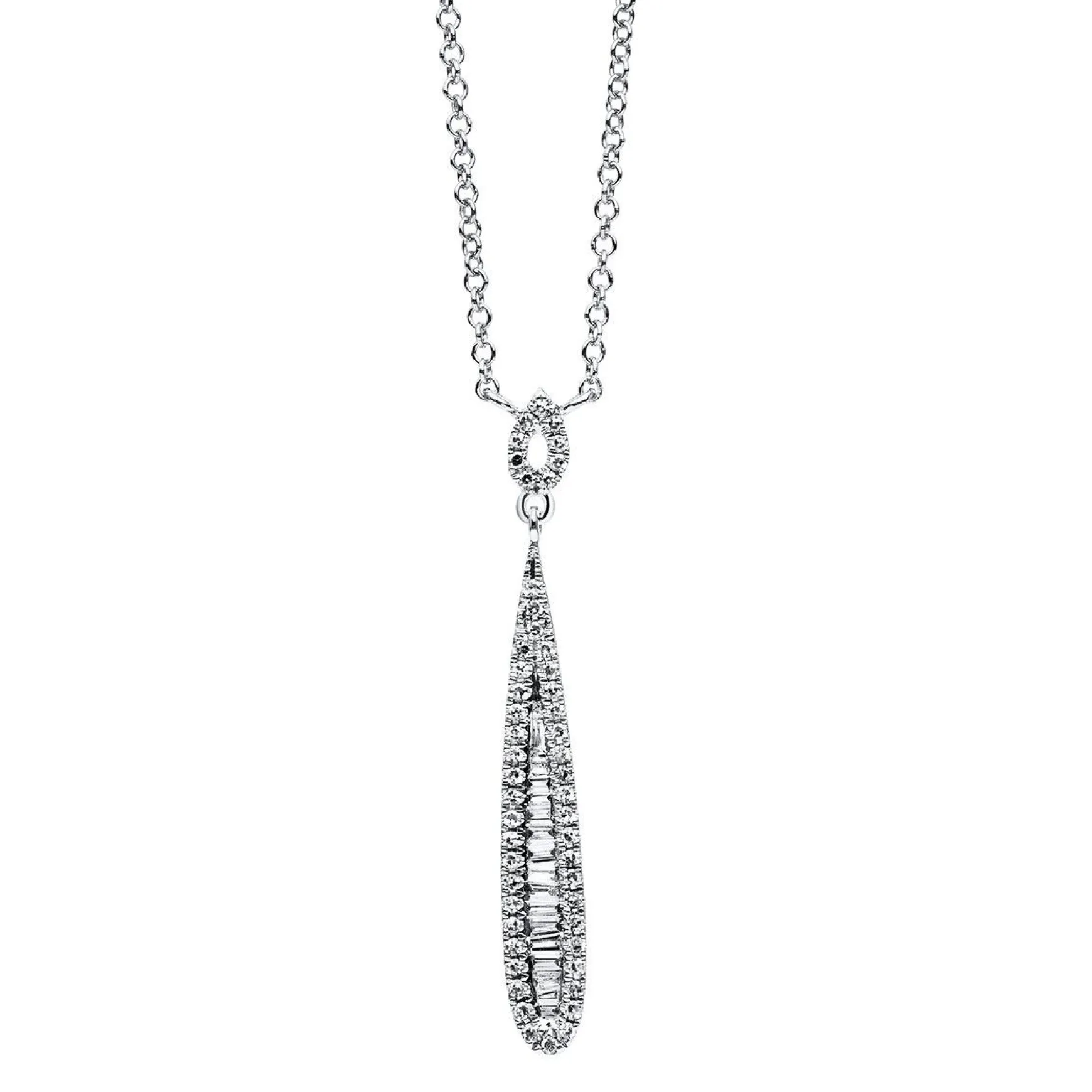 Collier 14 kt WG, 16 Trap. 0,11 ct, TW-si, 51 Brill. 0,11 ct, TW-si, H:31,1 mm, B:4,1 mm, L:46 cm
