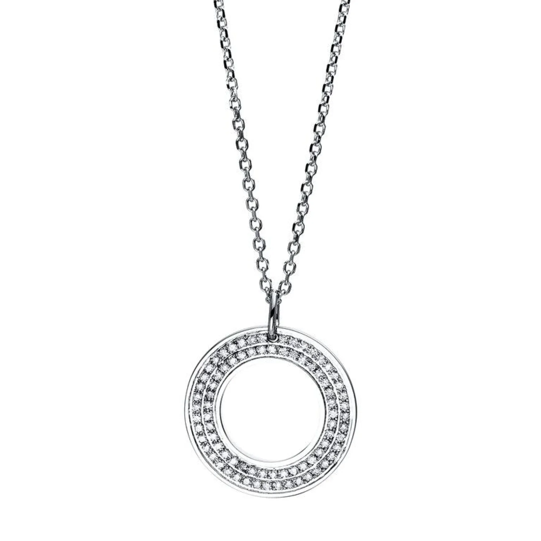 Collier 585/14K Weissgold Kreis Diamant 0.2ct. 40 cm