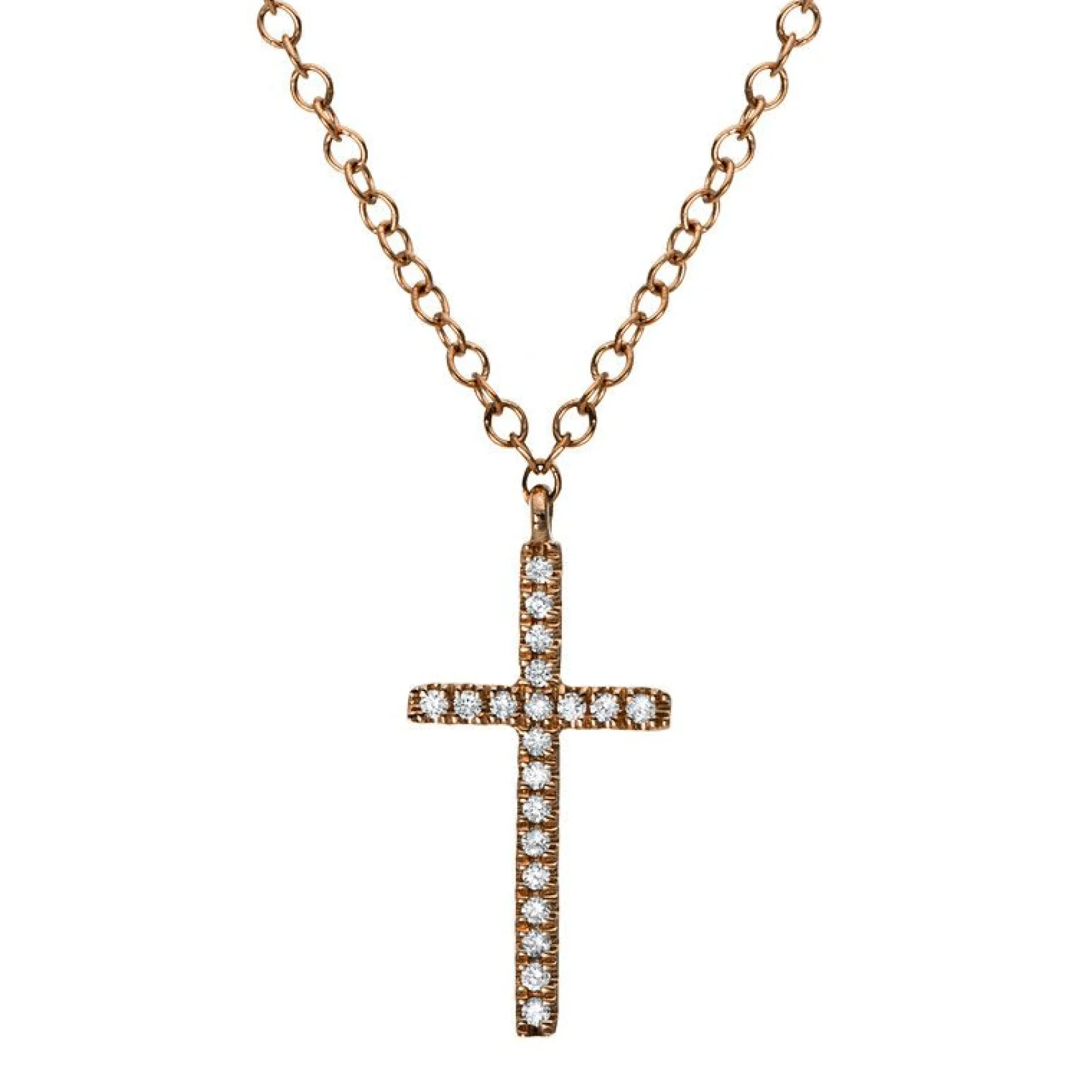 Collier 750/18K Rotgold Kreuz Diamant 0.03ct. 43 cm