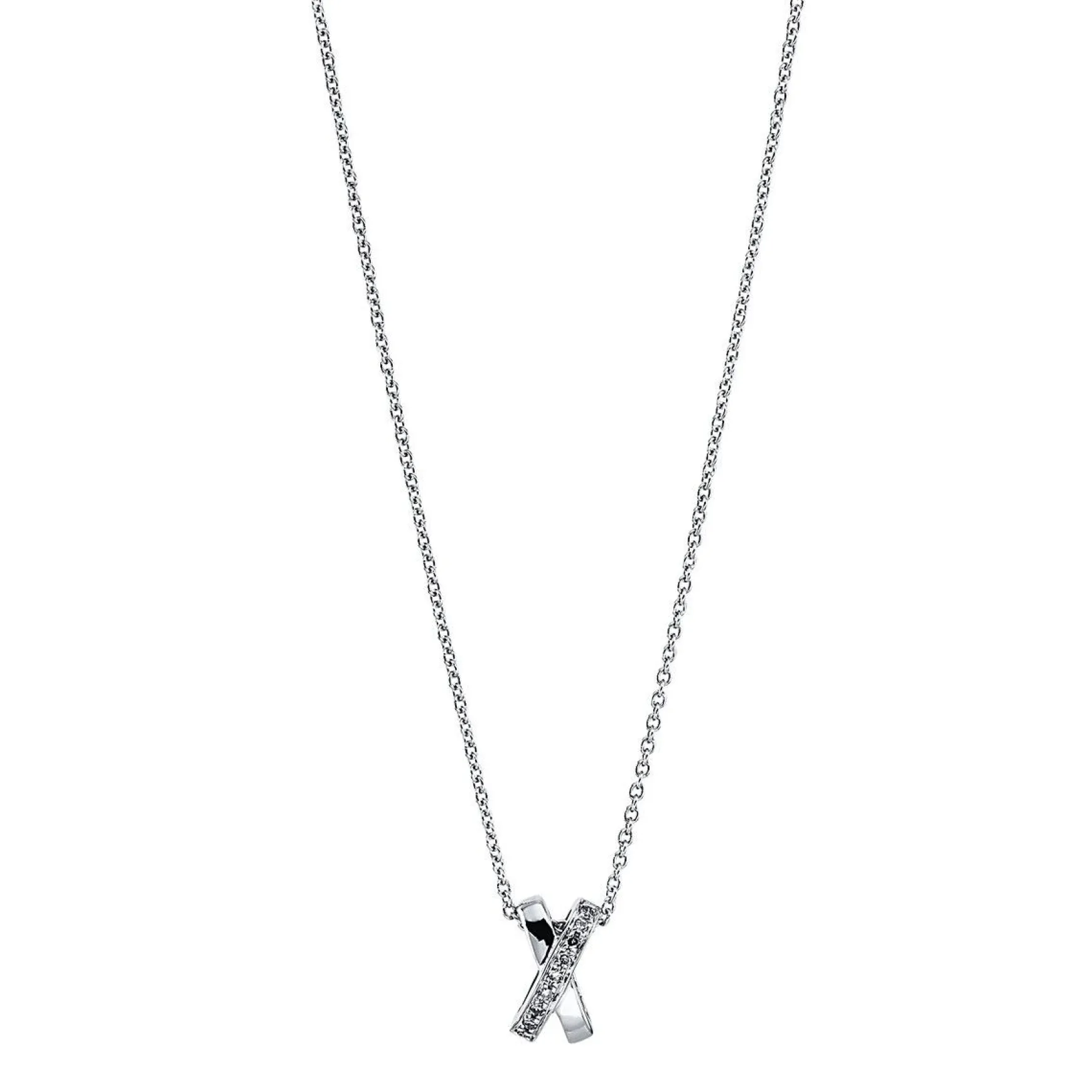 Collier 18 kt WG „X“, 9 Brillanten 0,02 ct, W-si, L:42,0 cm