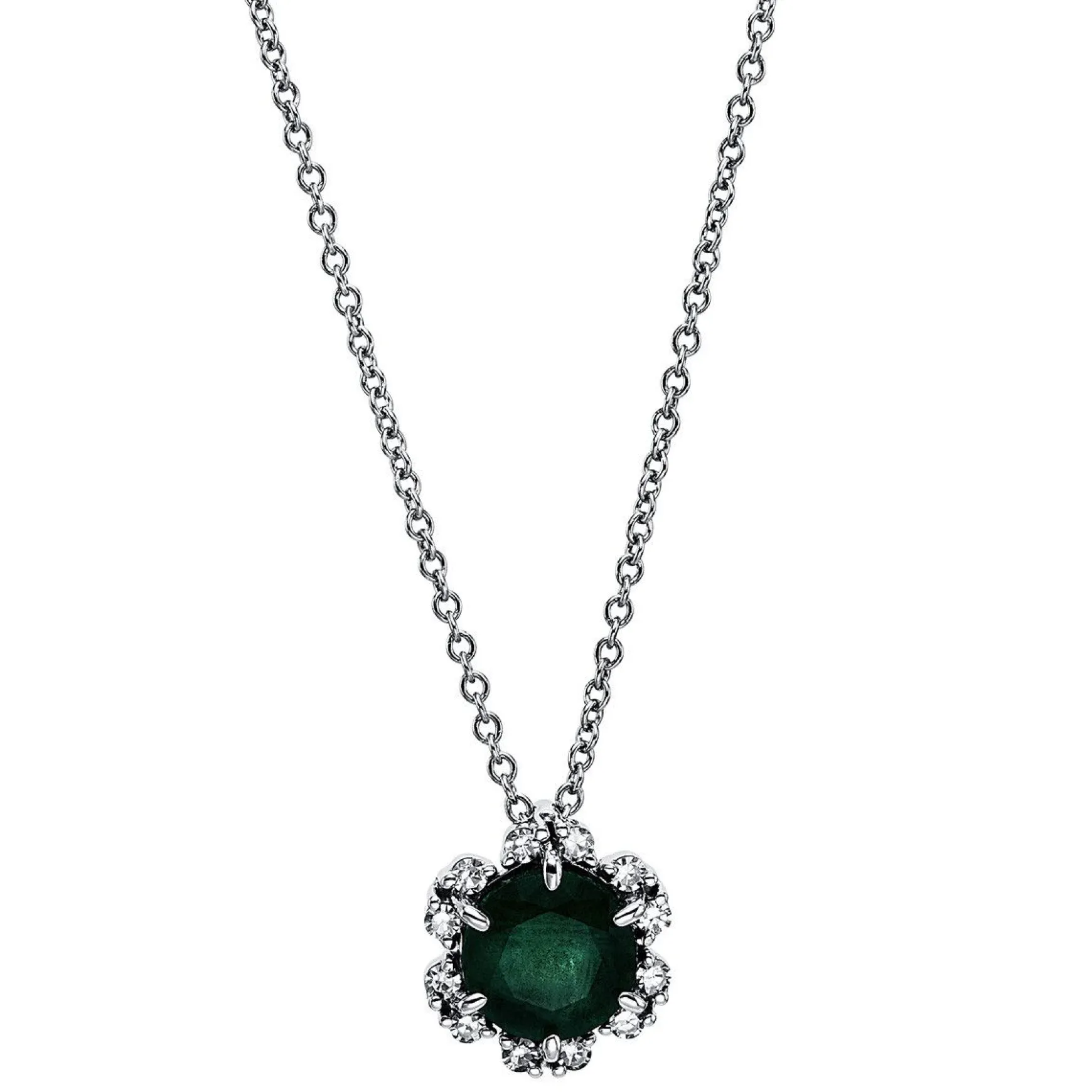 Collier 750/18K Weissgold Diamant 0.09ct. Smaragd 0.75ct.