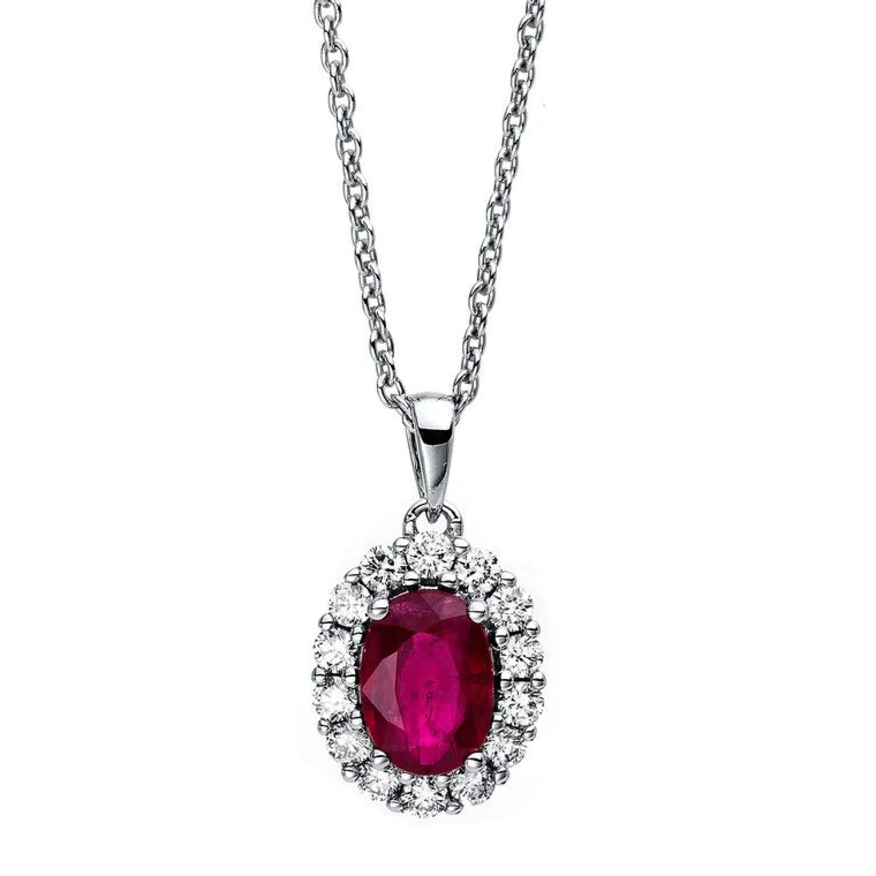 Collier 750/18K Weissgold Diamant 0.29ct. Rubin 0.79ct. 43 cm