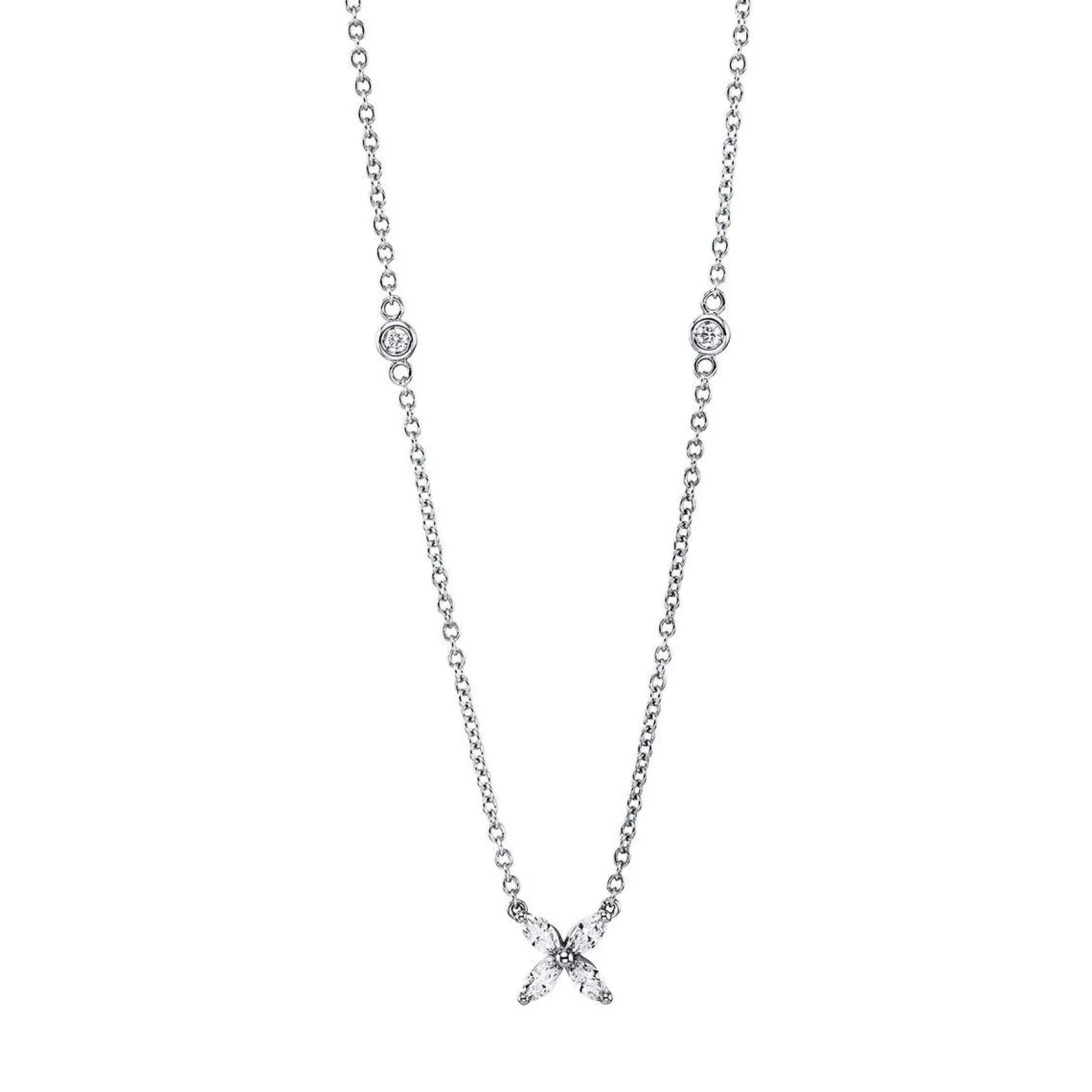 Collier 18 kt WG, 4 Navette 0,23 ct, L:42,0 cm