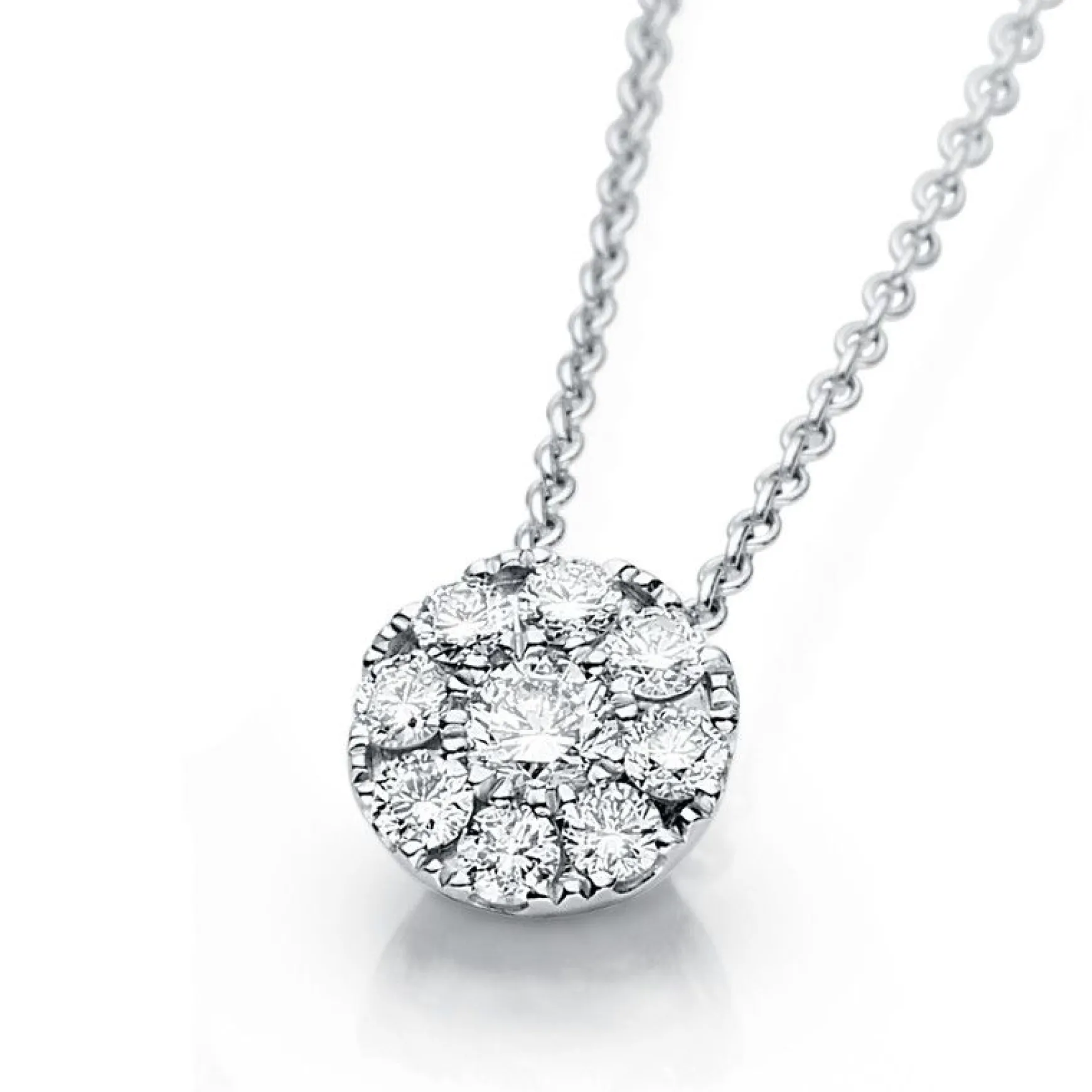 Diamantschmuck gehört zu einem stilvollen Abendkleid oder als dezentes Accessoire für den Alltag einfach dazu. In unserem Online Schmuck Shop finden Sie über 4000 Diamantschmuck-Stücke, darunter auch Collier aus 750/18K Weissgold mit einer Diamant-Steinfarbe: TW (TOP WEssELTON) Feines Weiss. Schmuck hier sichern und als Geschenk für den perfekten Moment bestellen. Allgemeine Produktinformation: Collier aus 750/18K Weissgold mit 9 Diamant Steinen und 0.38 Karat. Schliffform: Brillantschliff, Steinreinheit: VSI