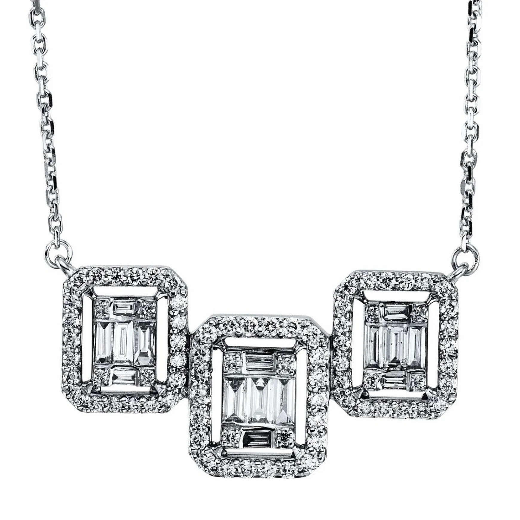 Collier 18 kt WG, 16 Baguette 0,28 ct, TW-vsi/si, 100 Brillanten 0,35 ct, TW-vsi/si, L:42,0 cm