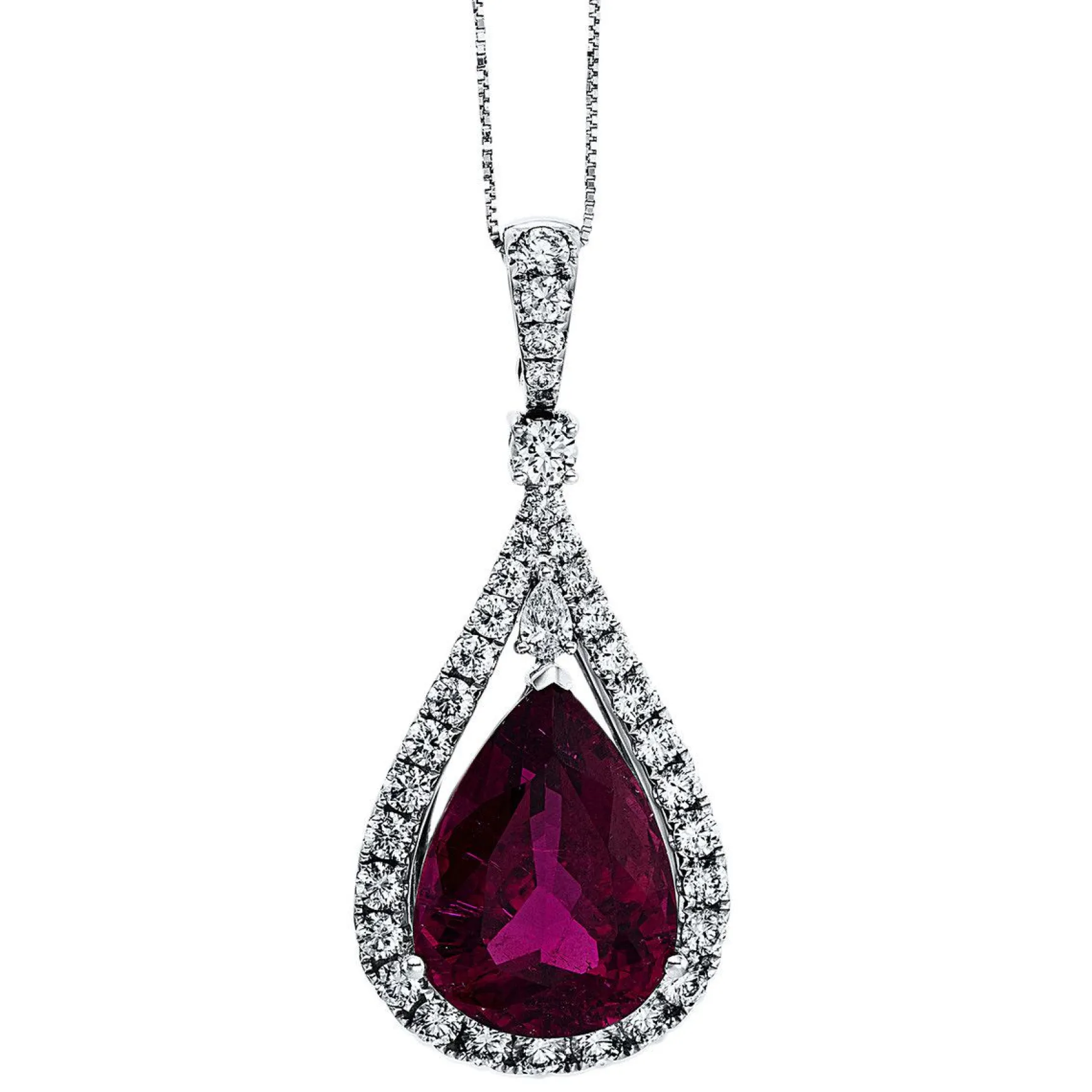 Collier 18 kt WG, 2 Brillanten 0,23 ct, TW/W-si, 32 Brillanten 1,38 ct, TW/W-si, 1 Rubellit 11,29 ct rot, L:46,0 cm