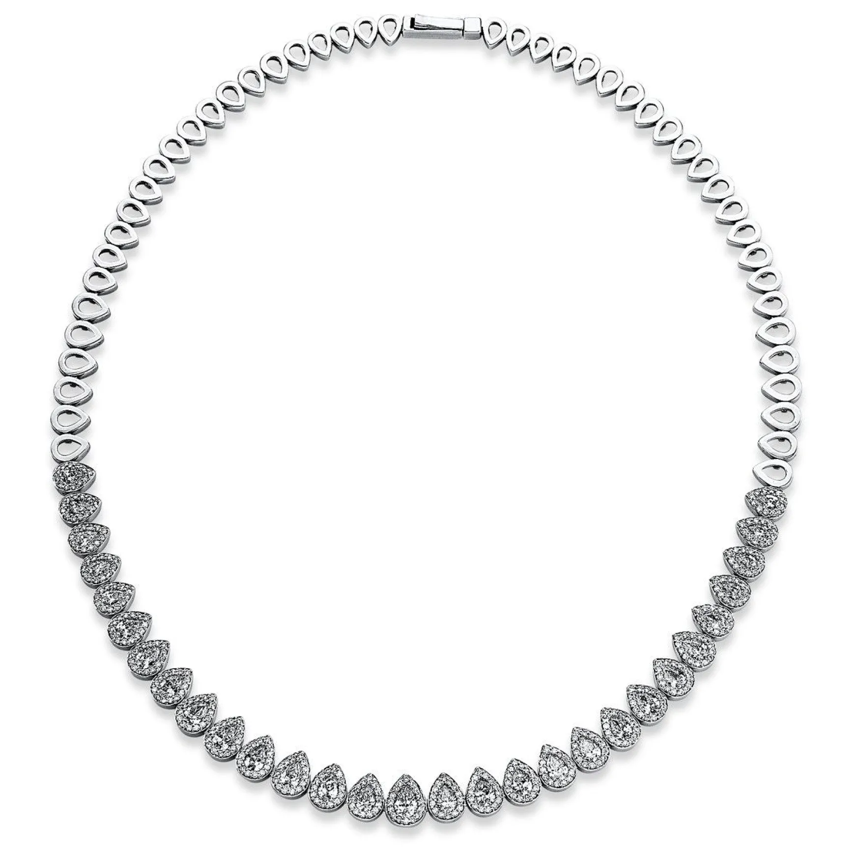 Collier 18 kt WG, 28 Tropfen 4,12 ct, TW-vsi, 1 Tropfen 0,30 ct, TW-vsi, 388 Brillanten 2,03 ct, TW-vsi, L:40,6 cm