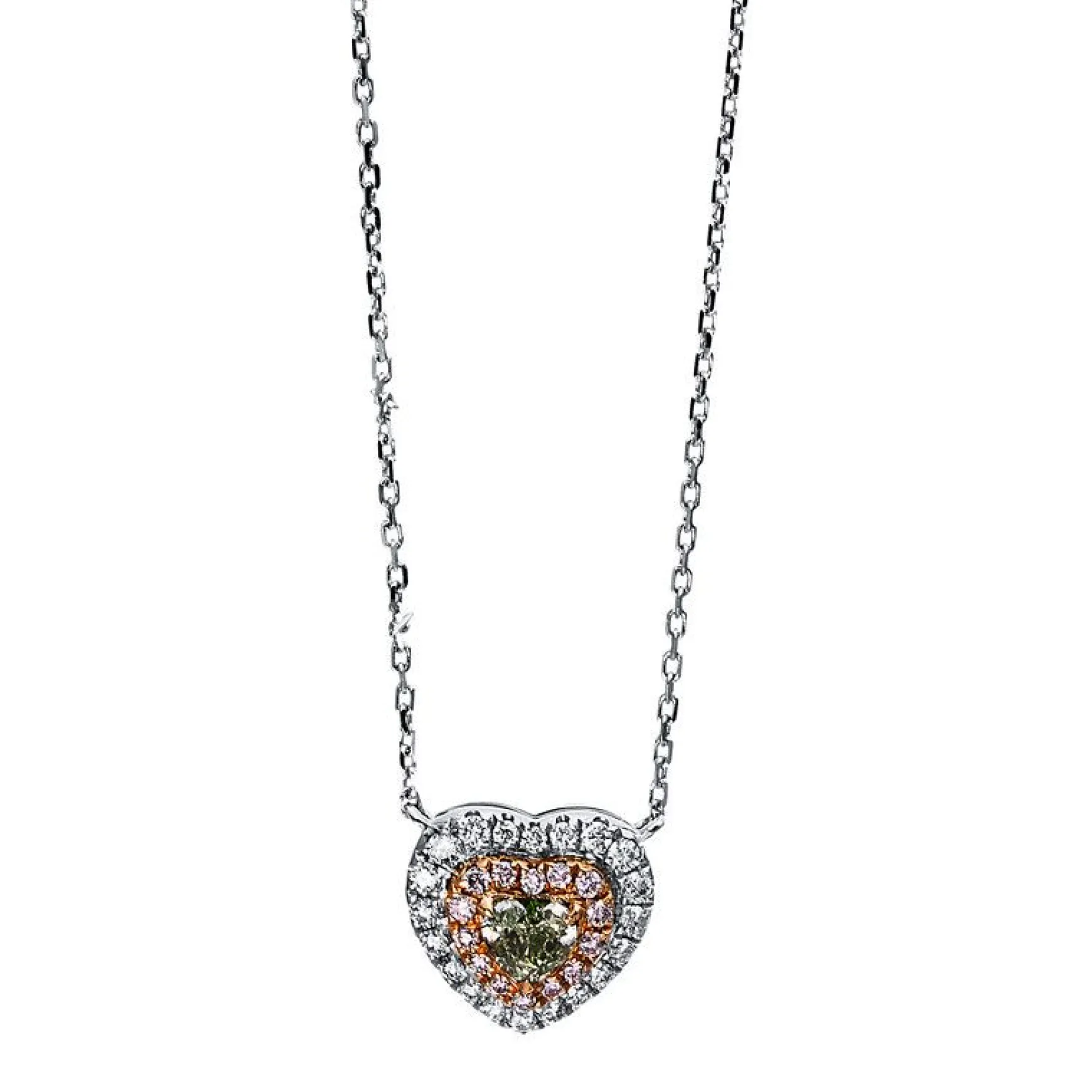 Collier 750/18K Weissgold/Rotgold Herz Diamant 0.3ct. 44 cm