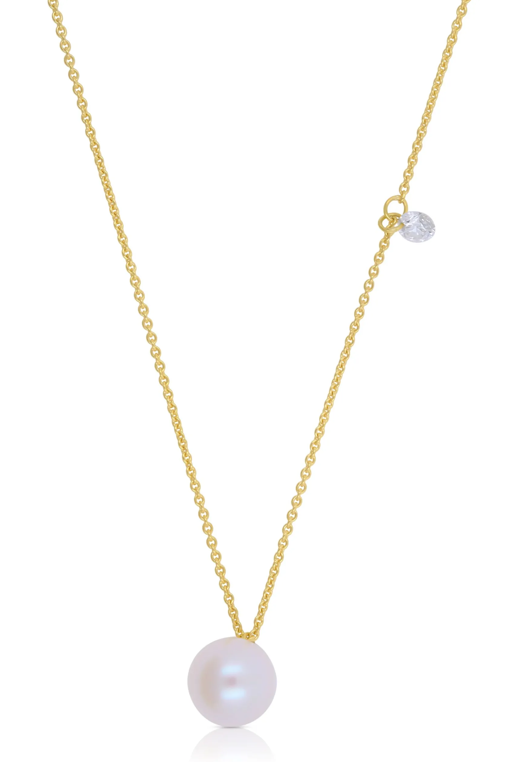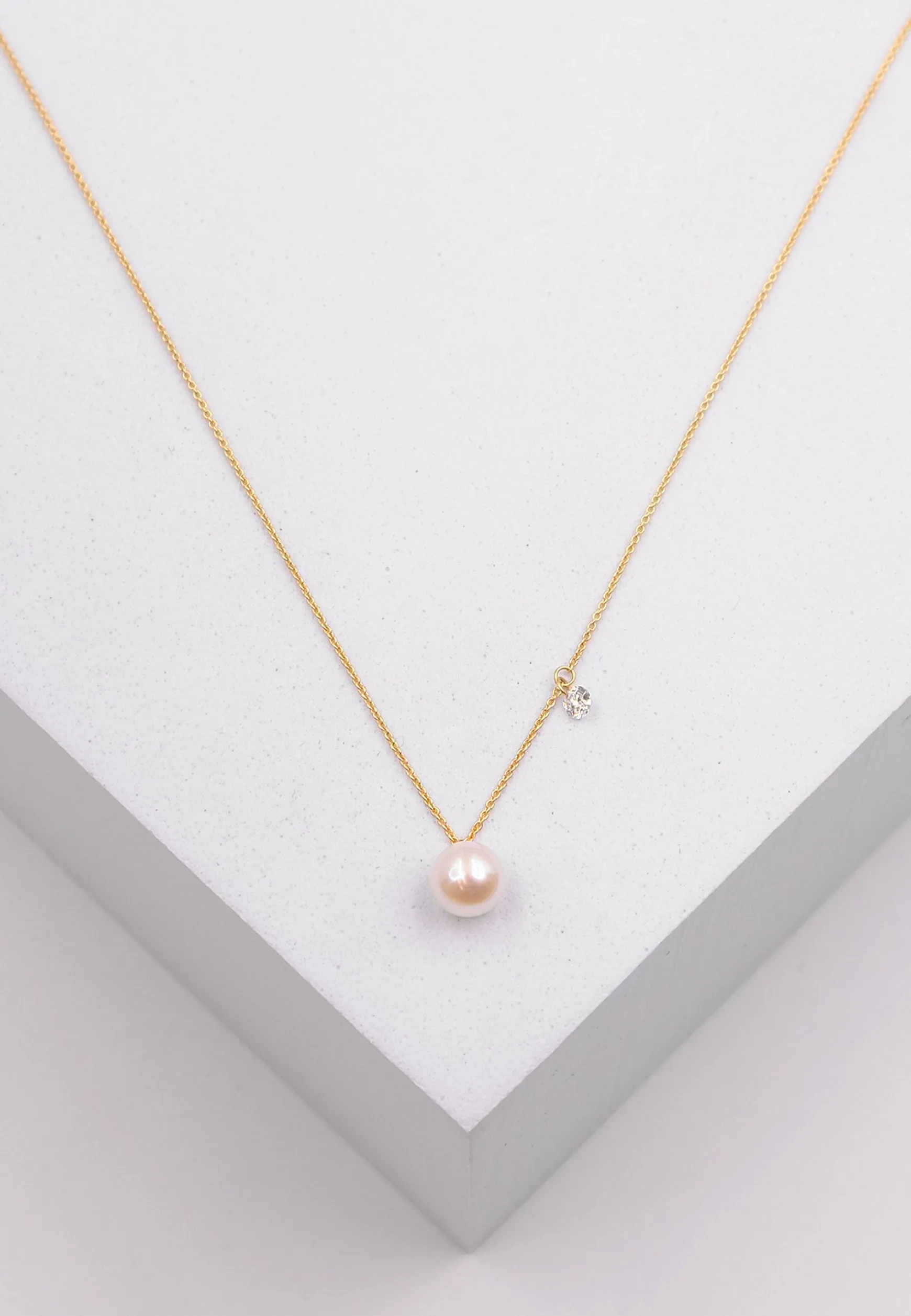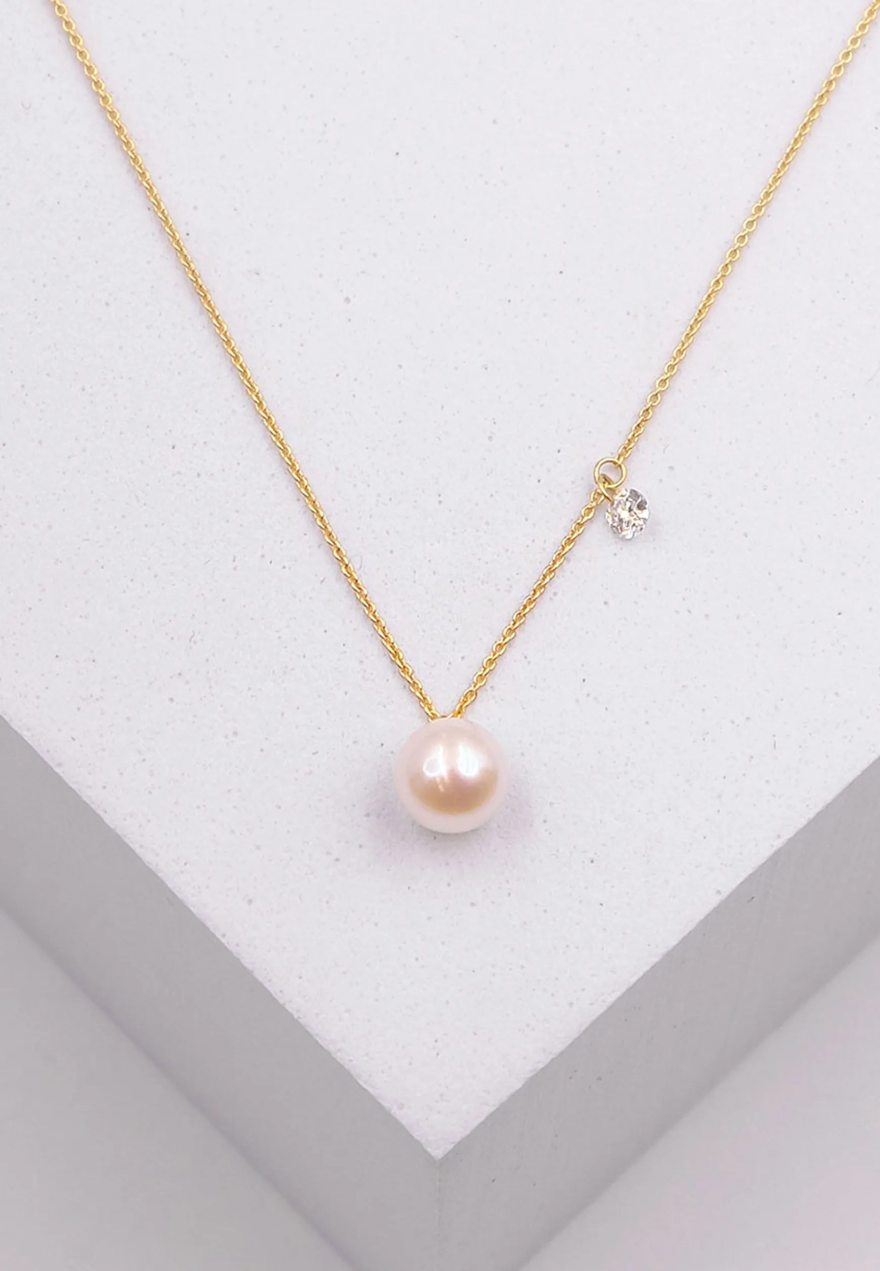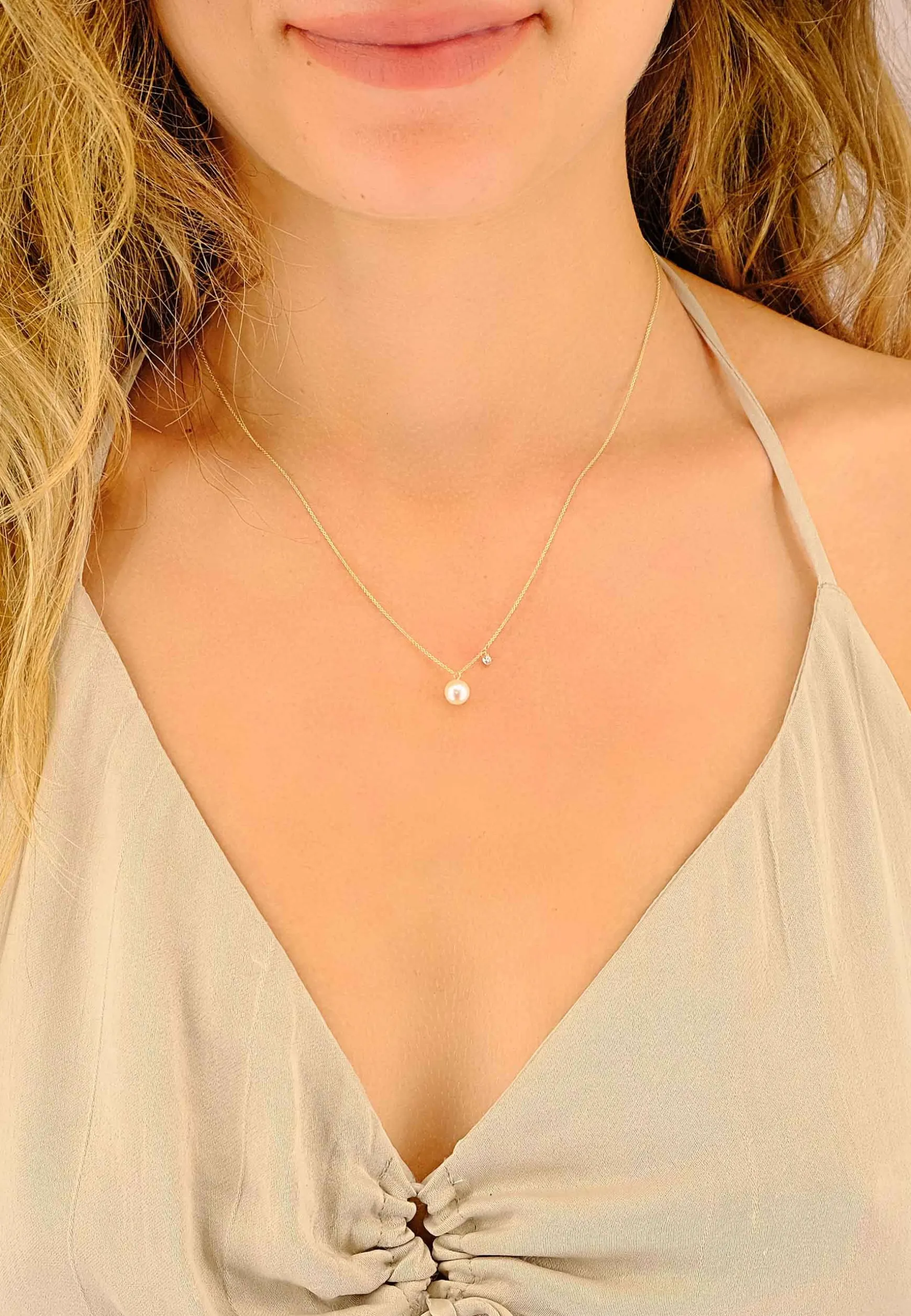 Collier Gelbgold 750 Akoya Perle 5.5-6mm Brillant 0.06ct.