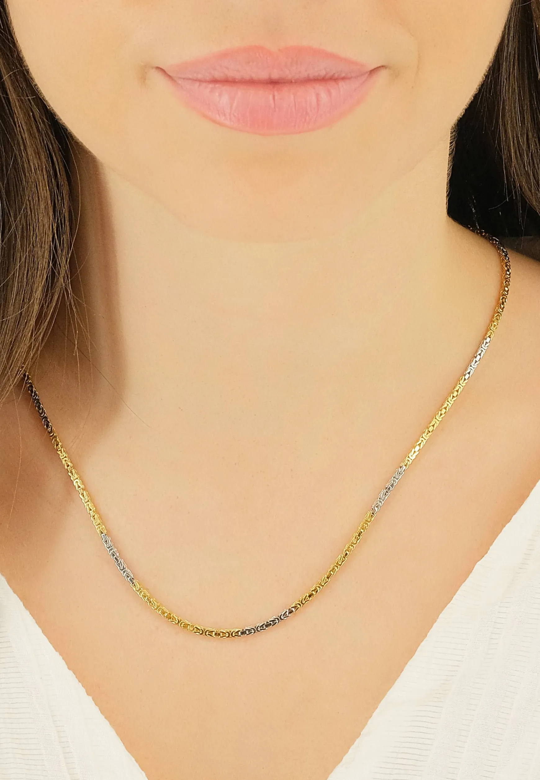 Collier Königskette Bicolor Gelbgold-/Weissgold 750, 2mm, 42cm