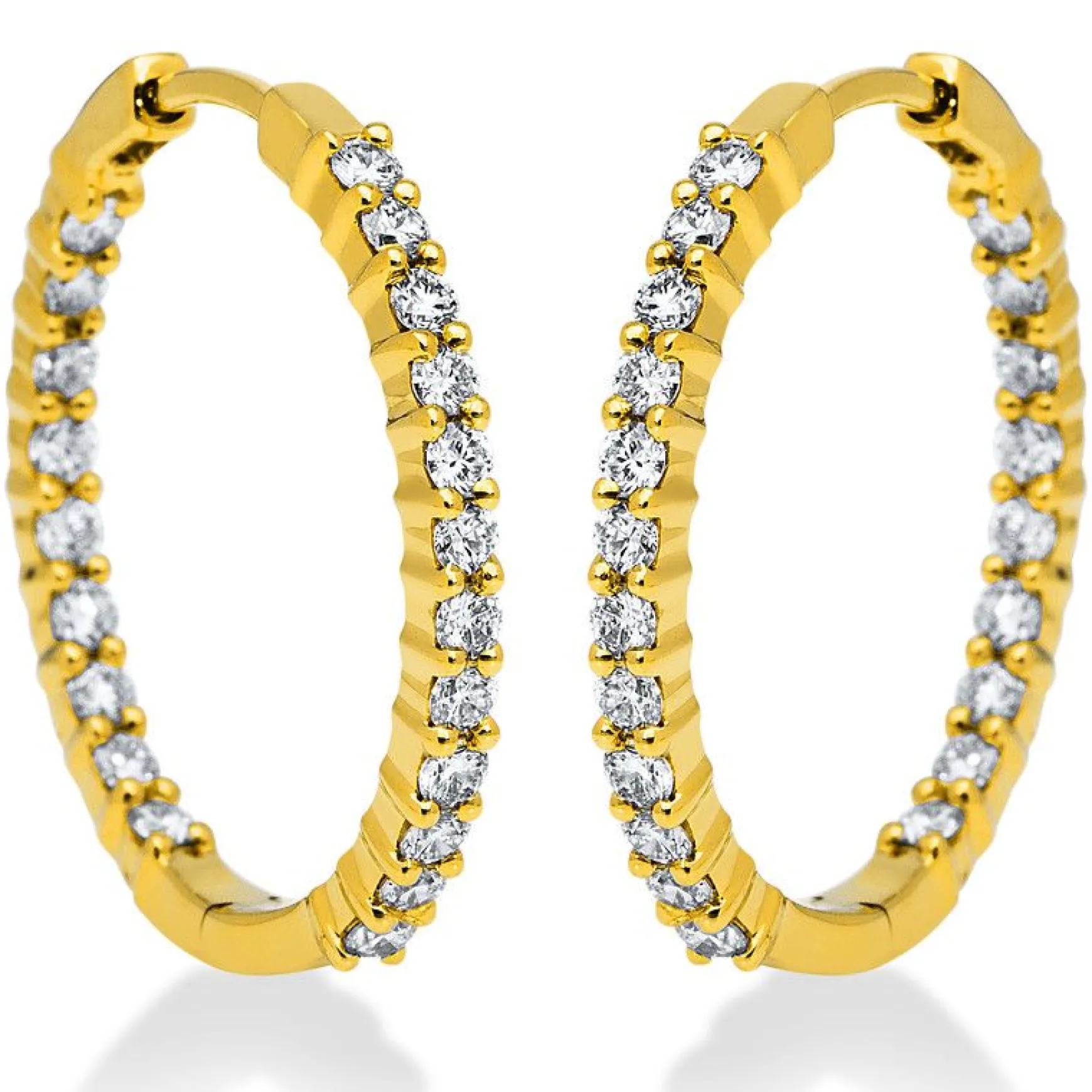 Ohrschmuck ist so individuell wie die Trägerin. Aus unserer Diamant Schmuck Kategorie bieten wir unzählige Schmuckstücke die zu jedem Style passen, wie diese Creolen aus 750/18K Gelbgold mit einer Diamant-Steinfarbe: TW (TOP WEssELTON) Feines Weiss. Holen Sie sich jetzt höchste Qualität mit unserer Selektion an Diamantschmuck. Allgemeine Produktinformation: Creolen aus 750/18K Gelbgold mit 42 Diamant Steinen und 0.76 Karat. Schliffform: Brillantschliff, Steinreinheit: SI