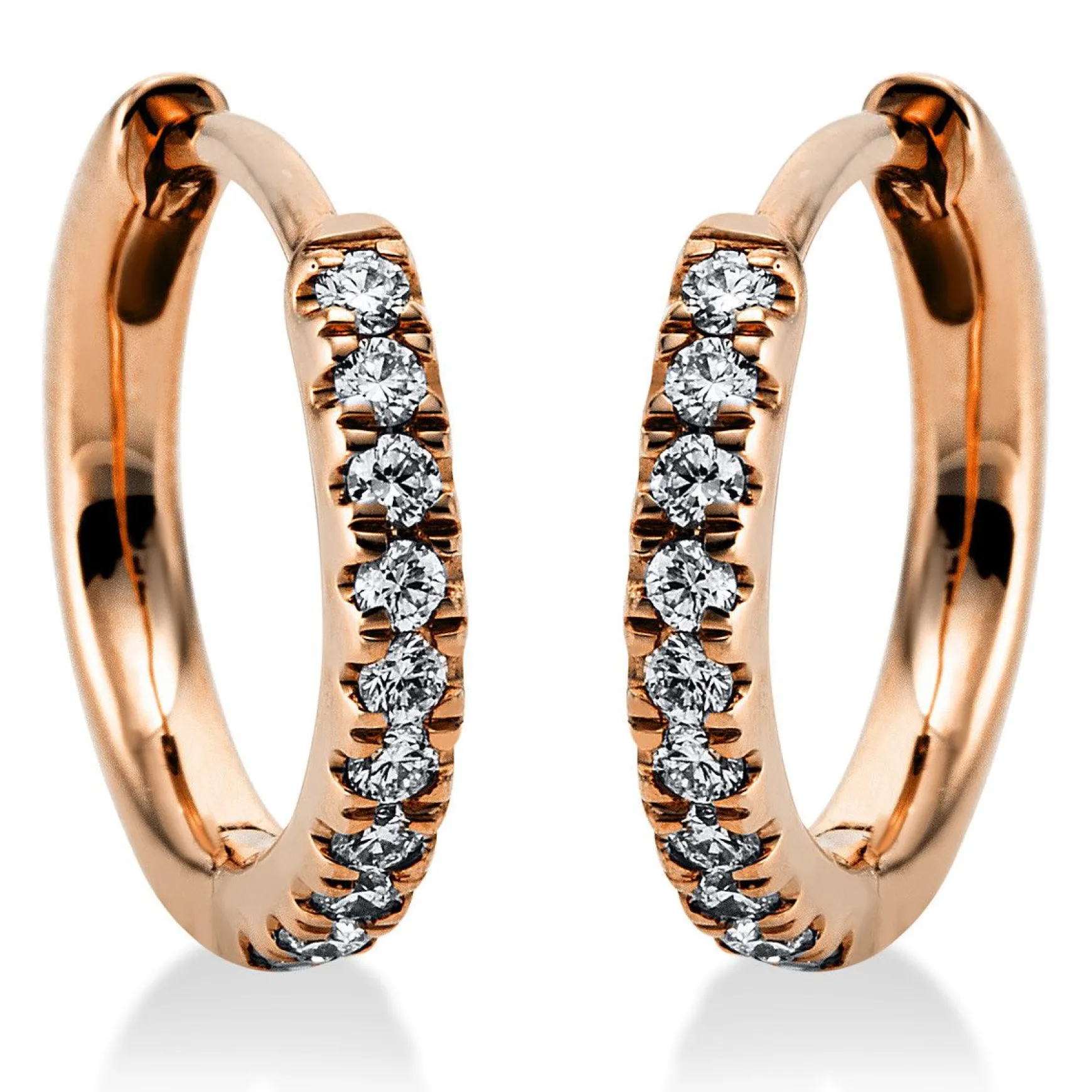 Creolen 18 kt RG, 20 Brillanten 0,15 ct, TW-si, H:11,1 mm, B:1,7 mm