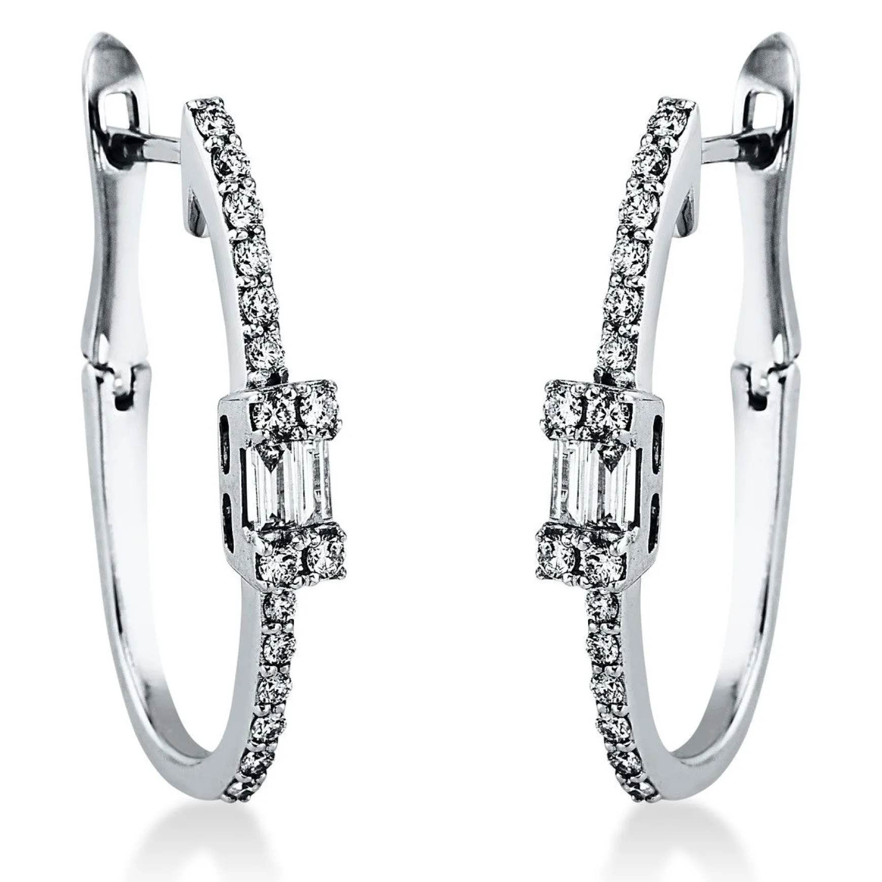 Creolen 18 kt WG, 4 Baguette 0,09 ct, TW-vsi/si, 32 Brillanten 0,31 ct, TW-vsi/si
