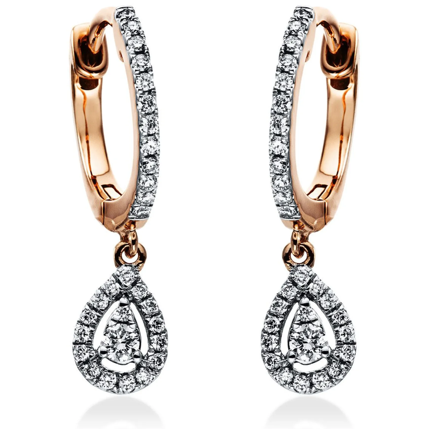 Creolen 18 kt RG+WG, 2 Brillanten 0,06 ct, TW-si, 56 Brillanten 0,17 ct, TW-si, H:19,6 mm, B:4,9 mm