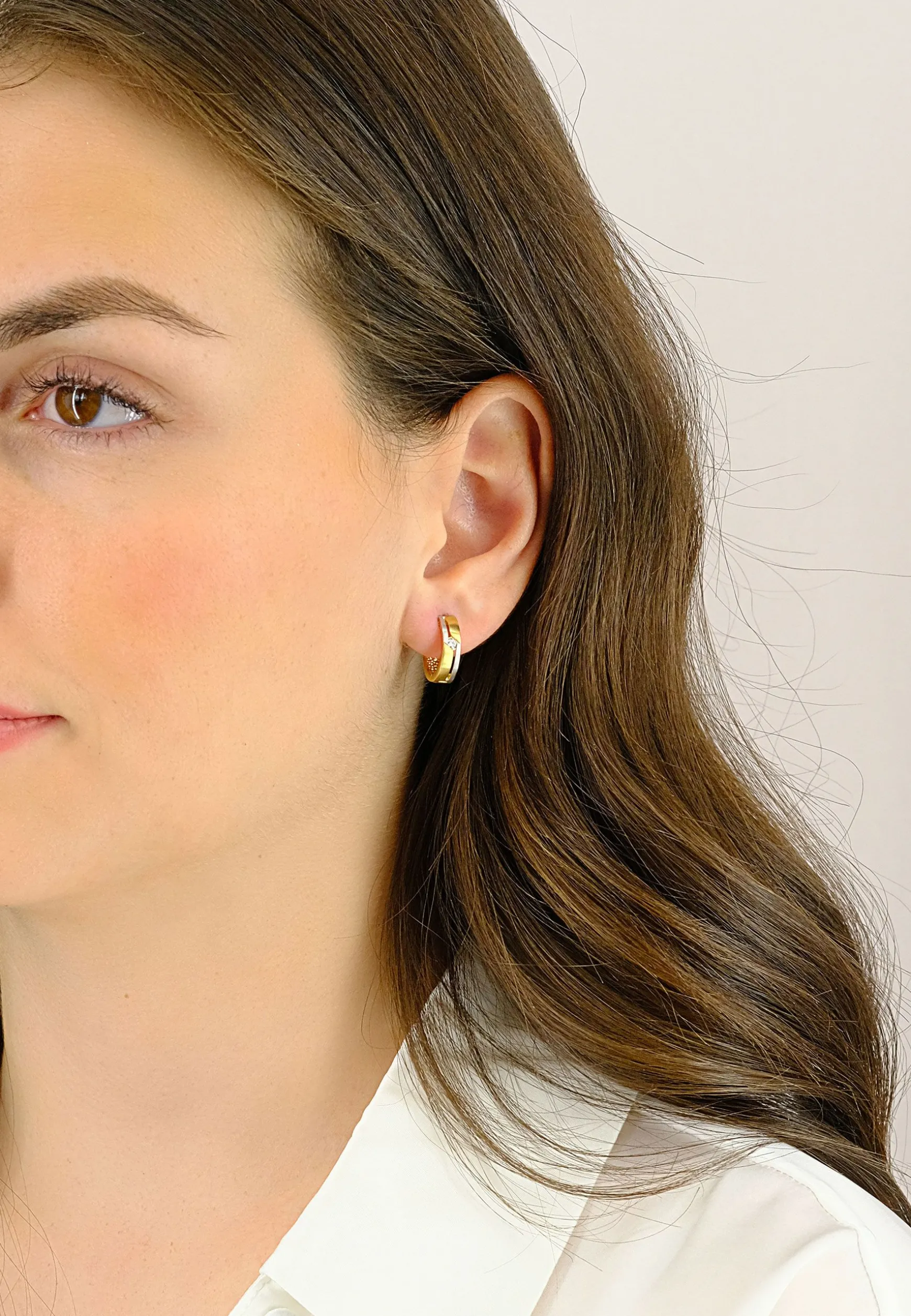 Creolen Bicolor Gelb-/Weissgold 750 Zirkonia 14mm