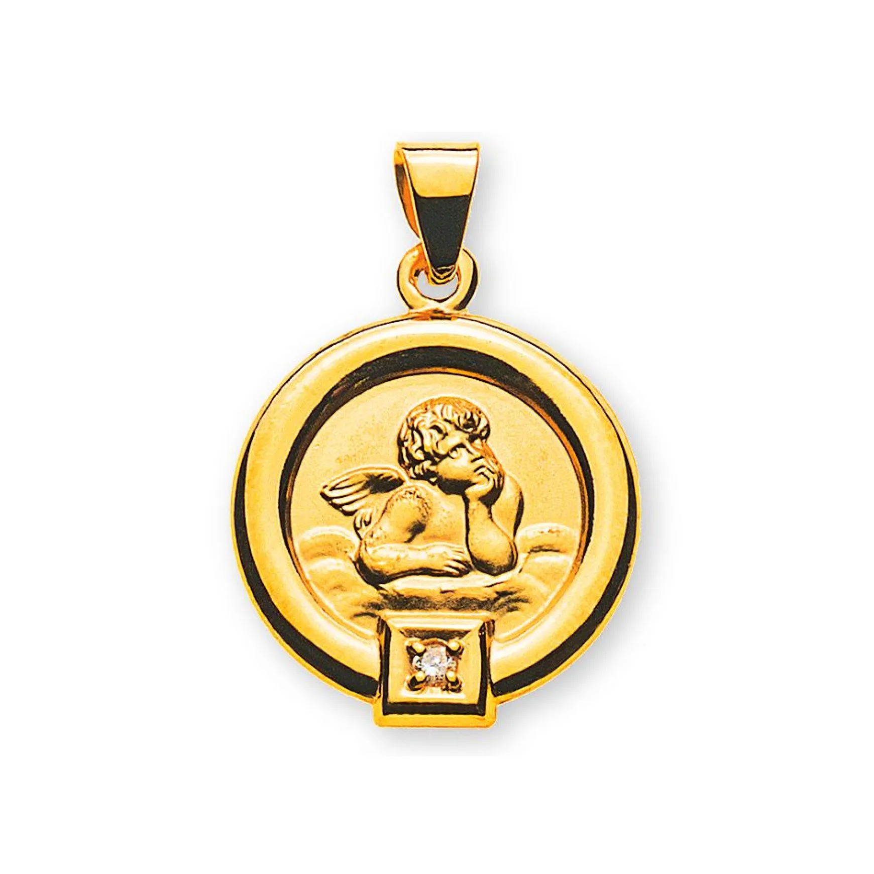 Engel Anhänger rund Gelbgold 750, 12mm Brillant 0.01.00ct.
