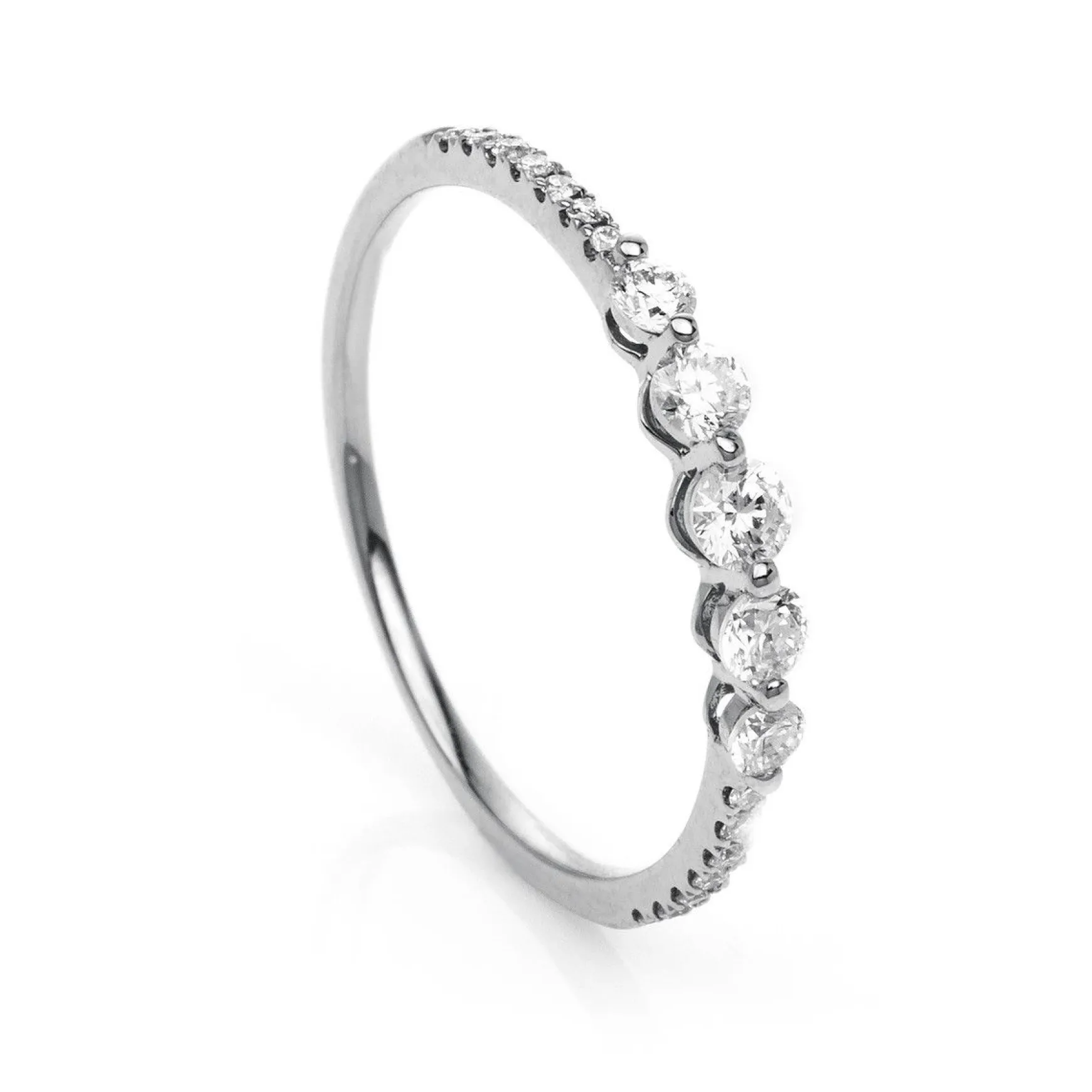 Ring 14 kt WG, 5 Brillanten 0,26 ct, TW-si, 14 Brillanten 0,06 ct, TW-si, B:2,6 mm, Weite:54