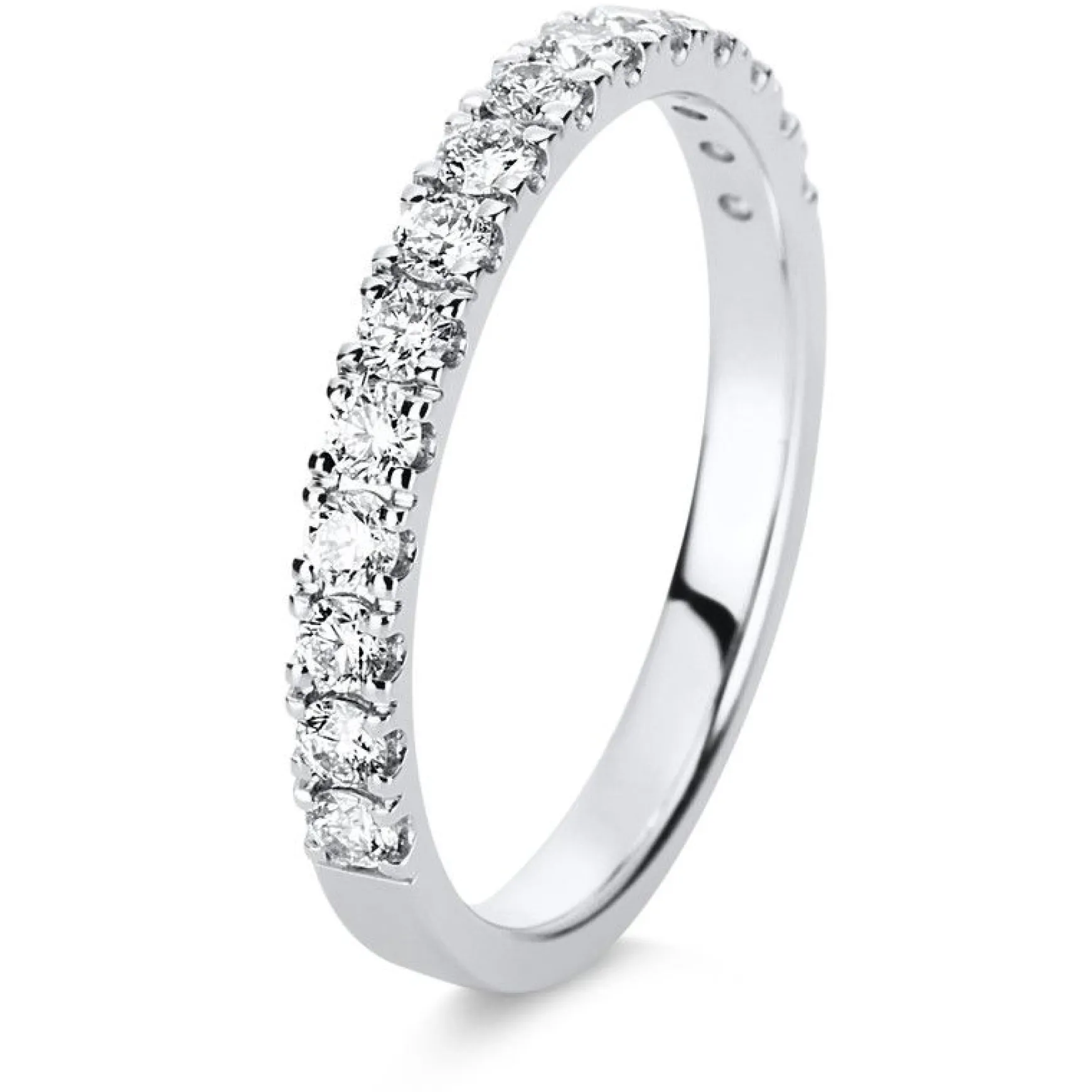 Diamantschmuck wird von vielen Kennern als das höchste der Gefühle in der Schmuck Branche geschätzt. Diamantringe entdecken Sie ganz einfach und bequem in unserem Schmuck Shop und bestellen oder verschenken Schmuck wie diesen Mémoire-Ring aus 585/14K Weissgold mit einer Diamant-Steinfarbe: TW (TOP WEssELTON) Feines Weiss. Gerne unterstützt Sie unser Schmuck-Spezialisten Team bei der Auswahl des Diamantrings. Kontaktieren Sie uns jetzt oder sichern Sie sich gleich Ihren Diamantschmuck bequem online. Allgemeine Produktinformation: Mémoire-Ring aus 585/14K Weissgold mit 15 Diamant Steinen und 0.5 Karat. Schliffform: Brillantschliff, Steinreinheit: SI