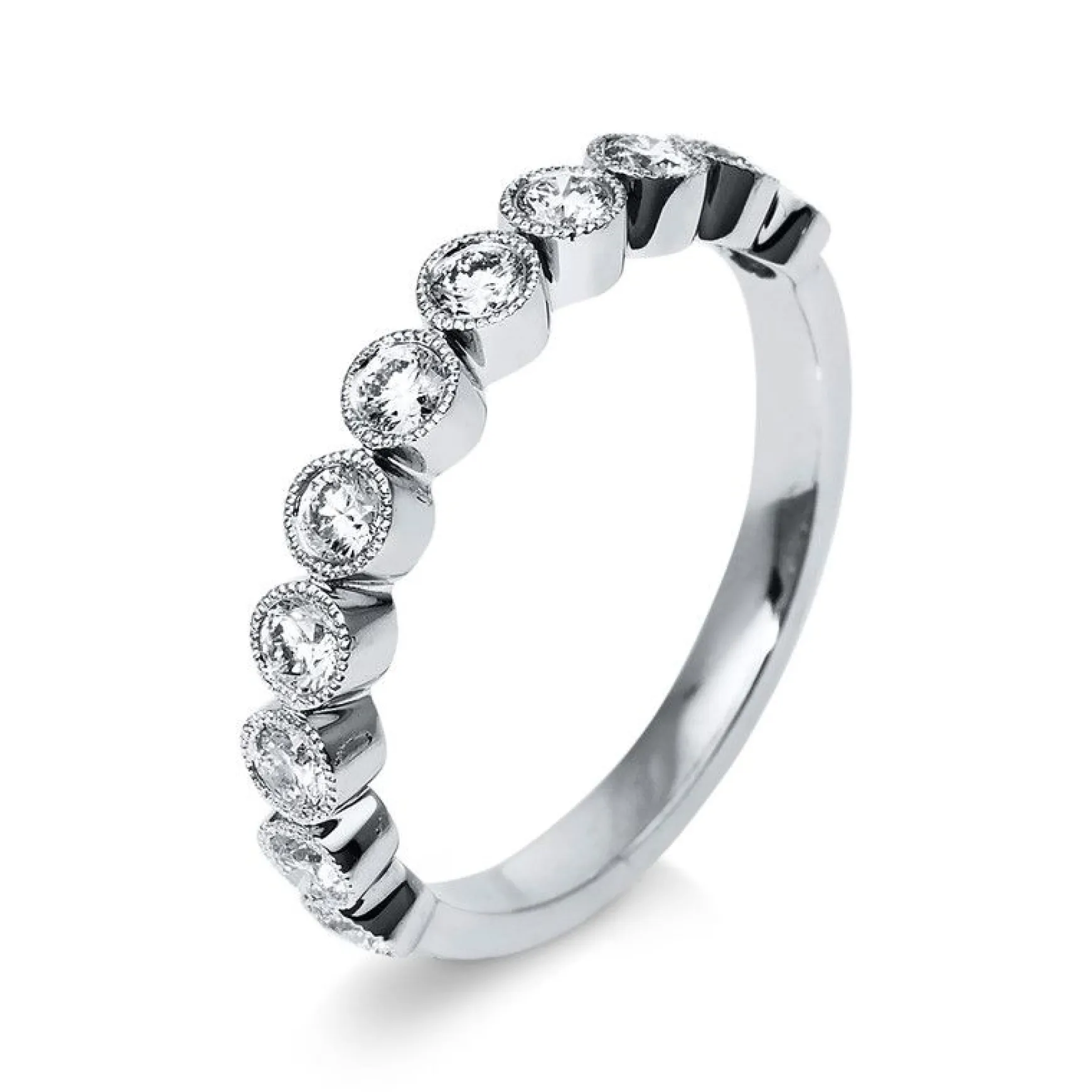 Ein Diamantring ist die höchste Form eines persönlichen Geschenk verbunden mit Emotionen. Im Online Schmuck Shop von MUAU finden Sie die schönsten Diamantringe, wie diesen Mémoire-Ring aus 750/18K Weissgold mit einer Diamant-Steinfarbe: TW (TOP WEssELTON) Feines Weiss. Holen Sie sich jetzt höchste Qualität mit unserer Selektion an Diamantschmuck. Allgemeine Produktinformation: Mémoire-Ring aus 750/18K Weissgold mit 11 Diamant Steinen und 0.51 Karat. Schliffform: Brillantschliff, Steinreinheit: VSI/SI