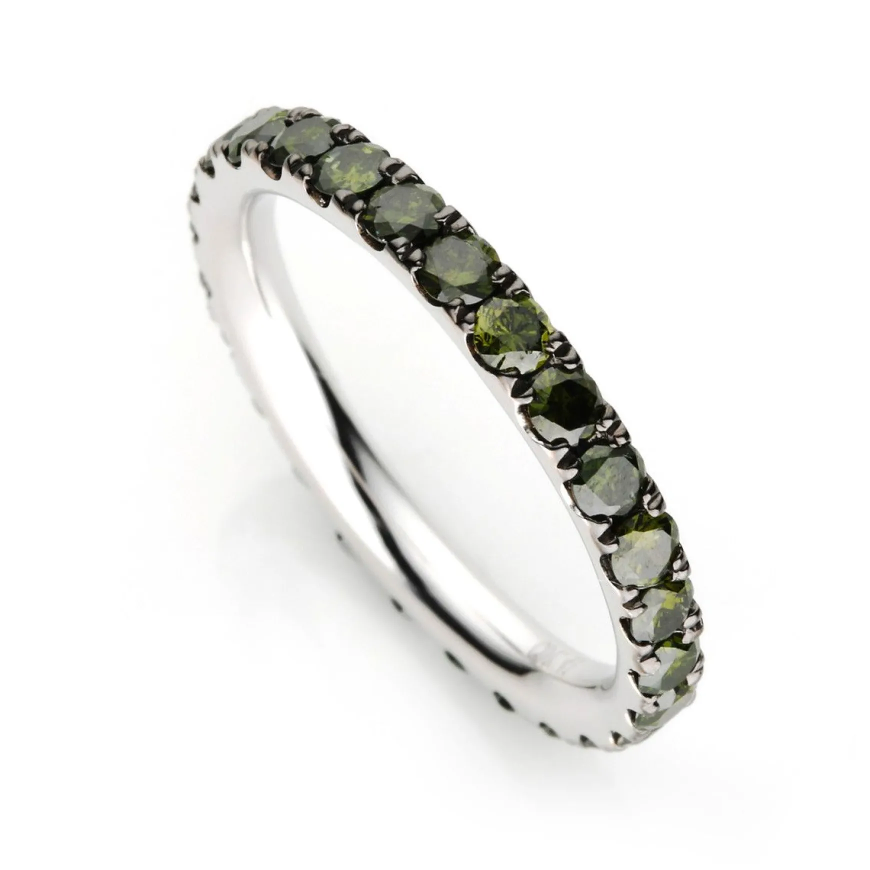 Ring 18 kt WG, schwarz rhodiniert, 26 Brillanten 1,41 ct, grün, Weite:53
