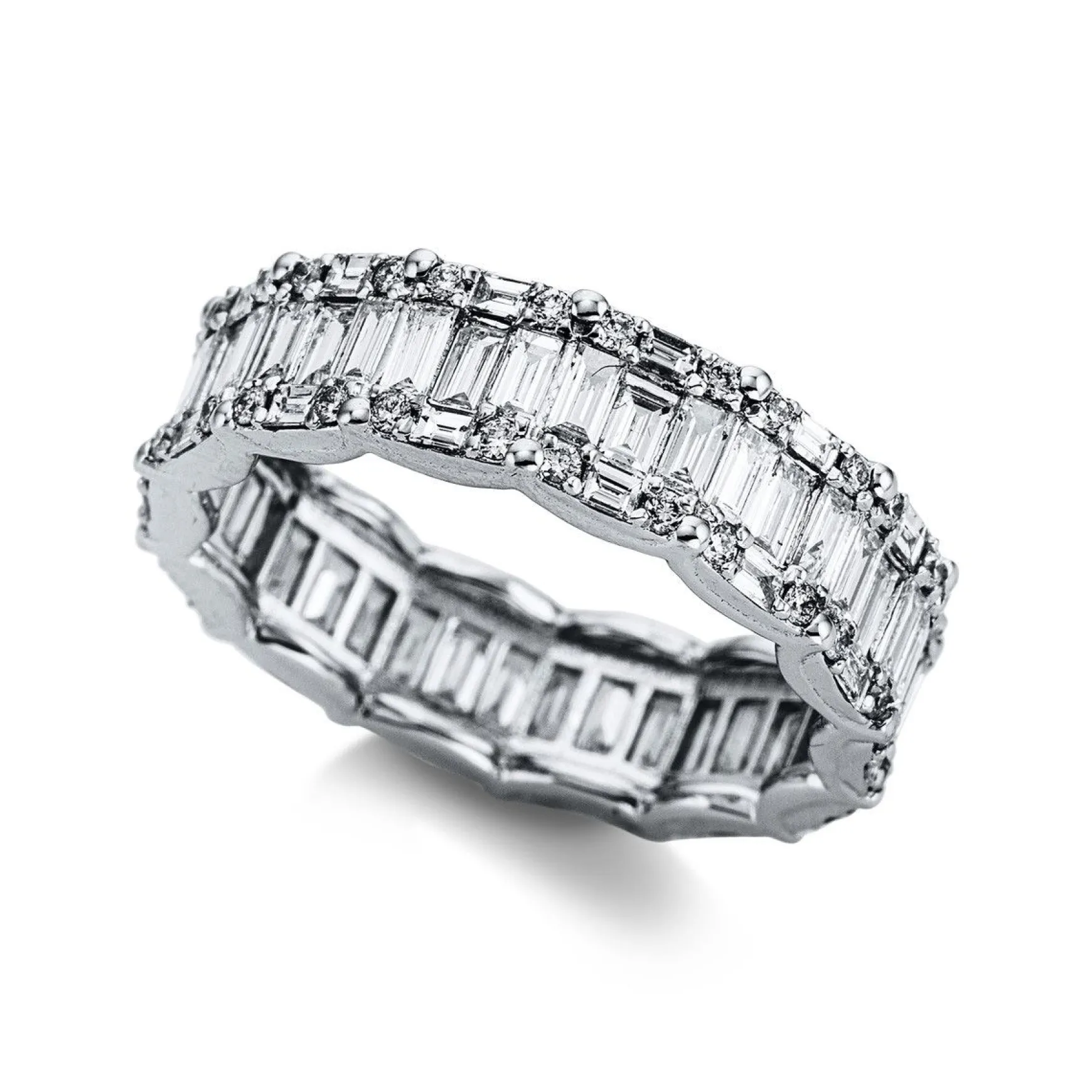Ring 18 kt WG, 56 Brillanten 0,34 ct, TW-si, 70 Baguette 1,87 ct, TW-si, Weite:53