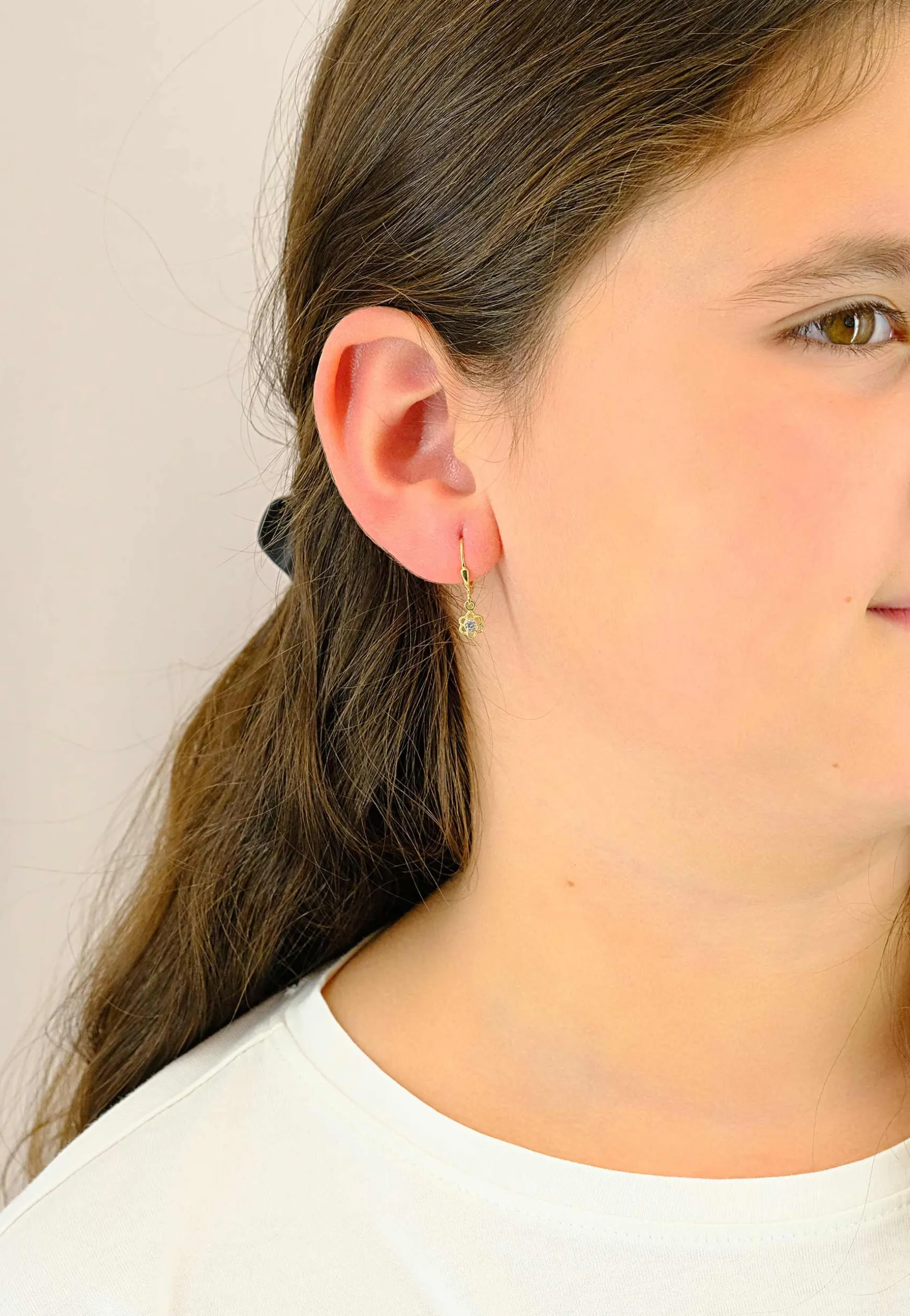 Ohrhänger mit Patentbrisuren Blume Gelbgold 750 Zirkonia 21x5mm