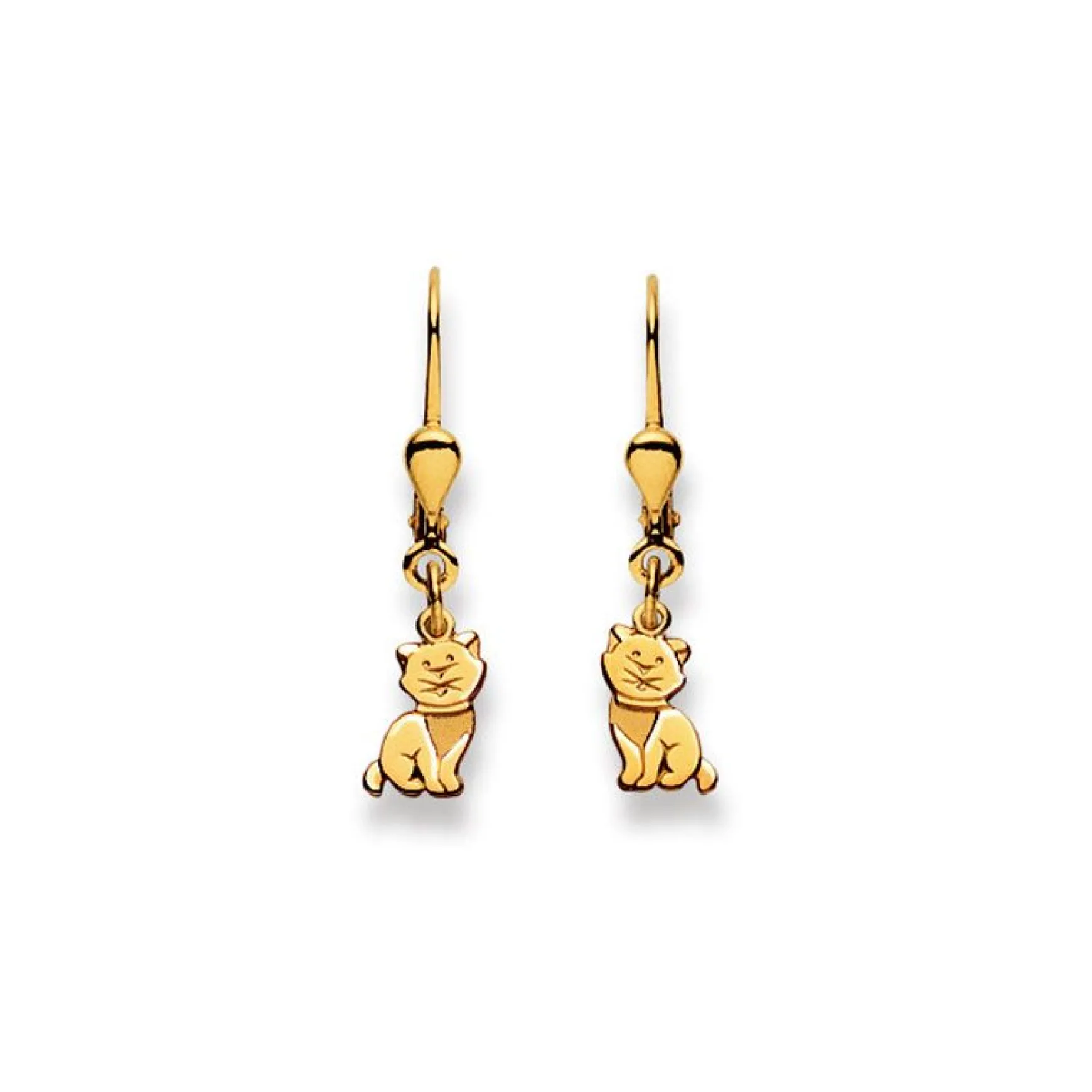 Ohrhänger mit Patentbrisuren Katze Gelbgold 750, 27x6mm
