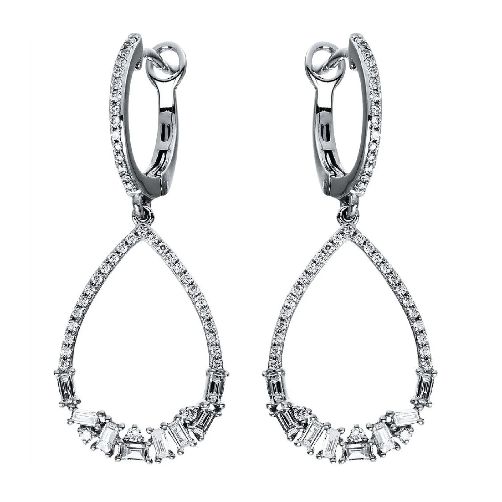 Ohrschmuck 18 kt WG „Tropfen“, 16 Baguette 0,45 ct, TW-si, 86 Brillanten 0,26 ct, TW-si
