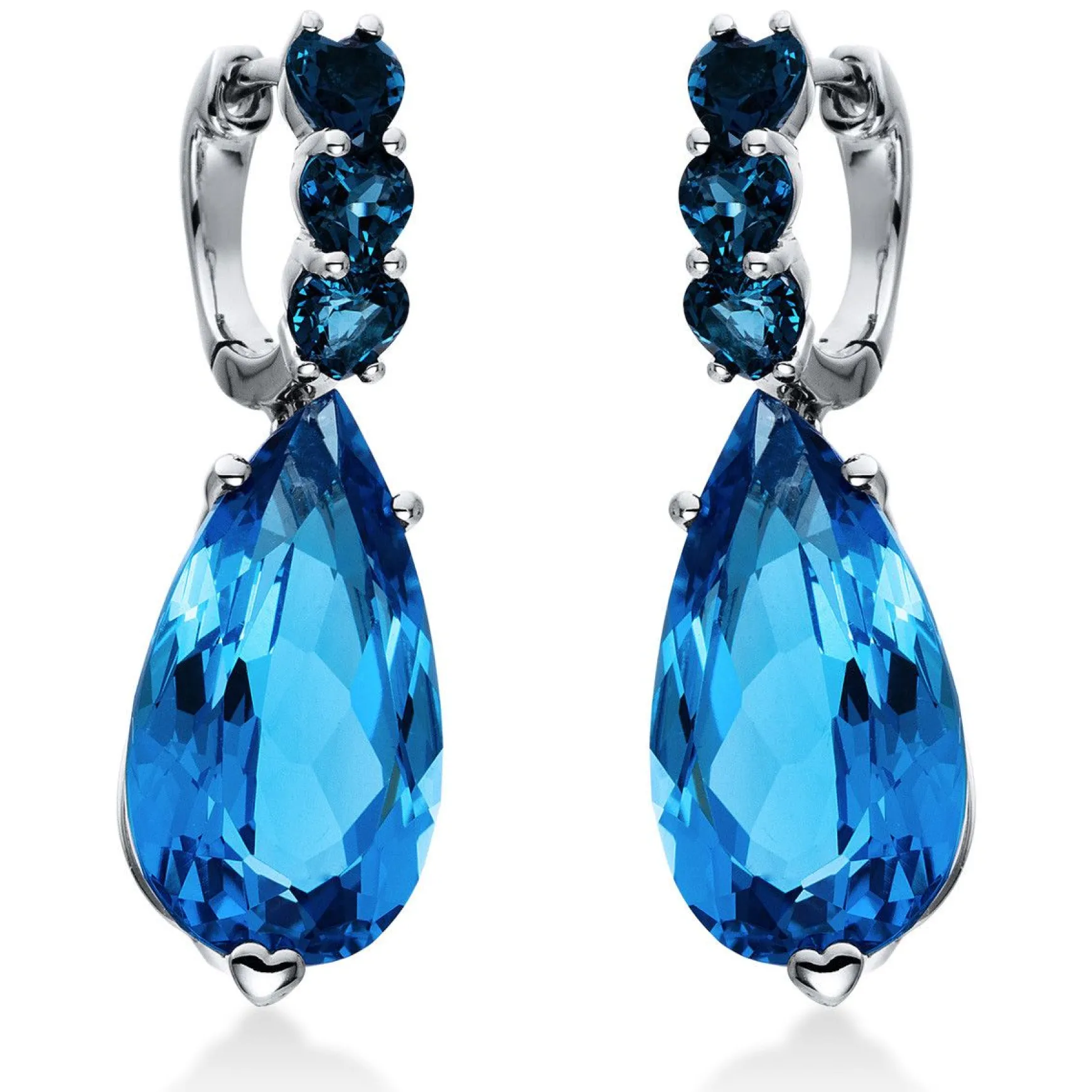 Ohrschmuck 18 kt WG, 2 Blautopase 18,80 ct blau, 6 Blautopase 1,90 ct Lond. blue, H:31,4 mm, B:10,0 mm
