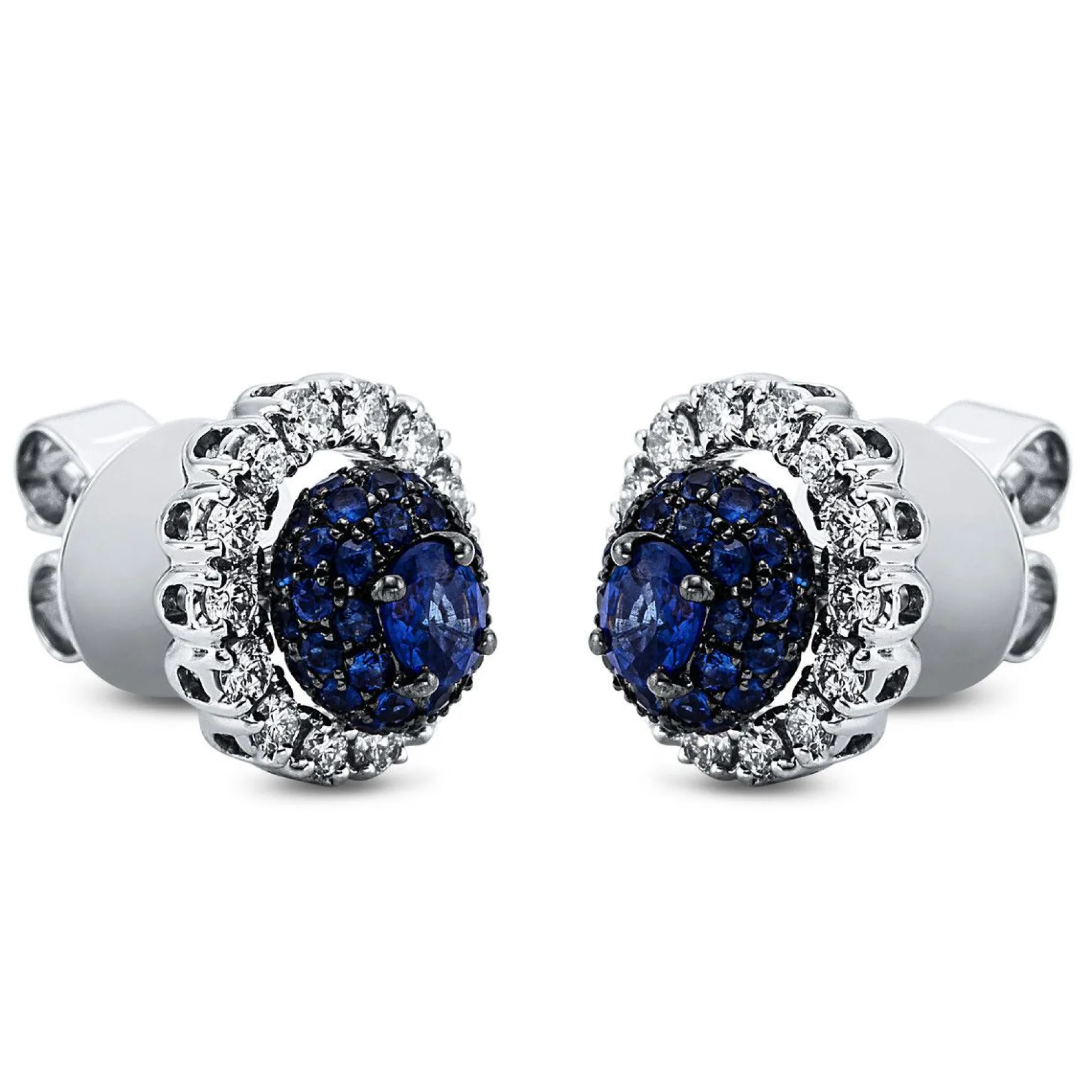 Ohrstecker 18 kt WG, Fassung teils schwarz rhodinie, 28 Brillanten 0,57 ct, TW/W-vsi/si, 2 Saphire 0,48 ct blau, 76 Saphire 0,81 ct blau
