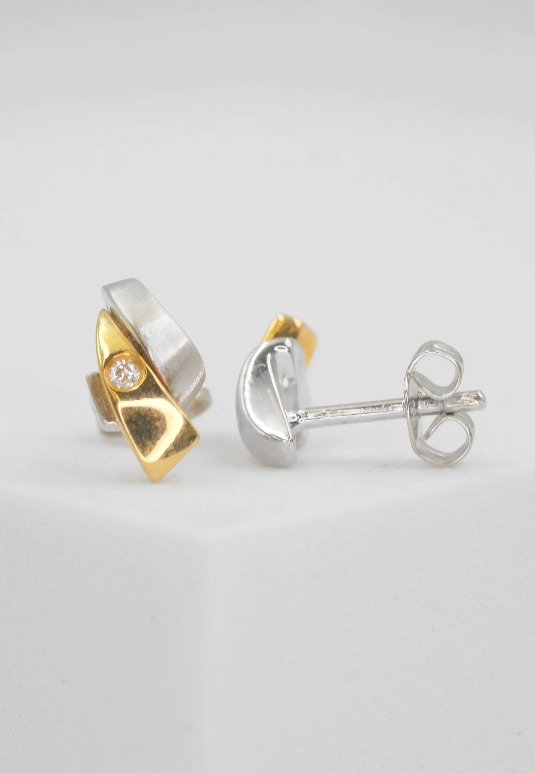 Ohrstecker Bicolor Gelb-/Weissgold 750 Diamant 0.03ct. 10x6mm