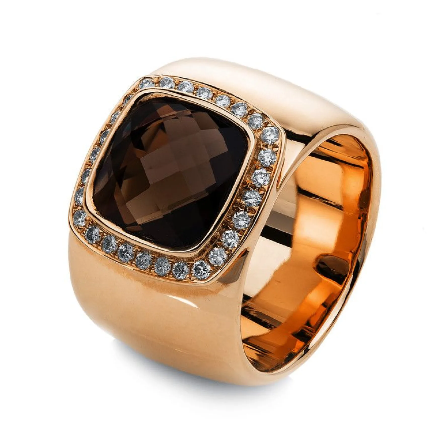 Ring 750/18K Rotgold Diamant 0.35ct. Rauchquarz 4.27ct.