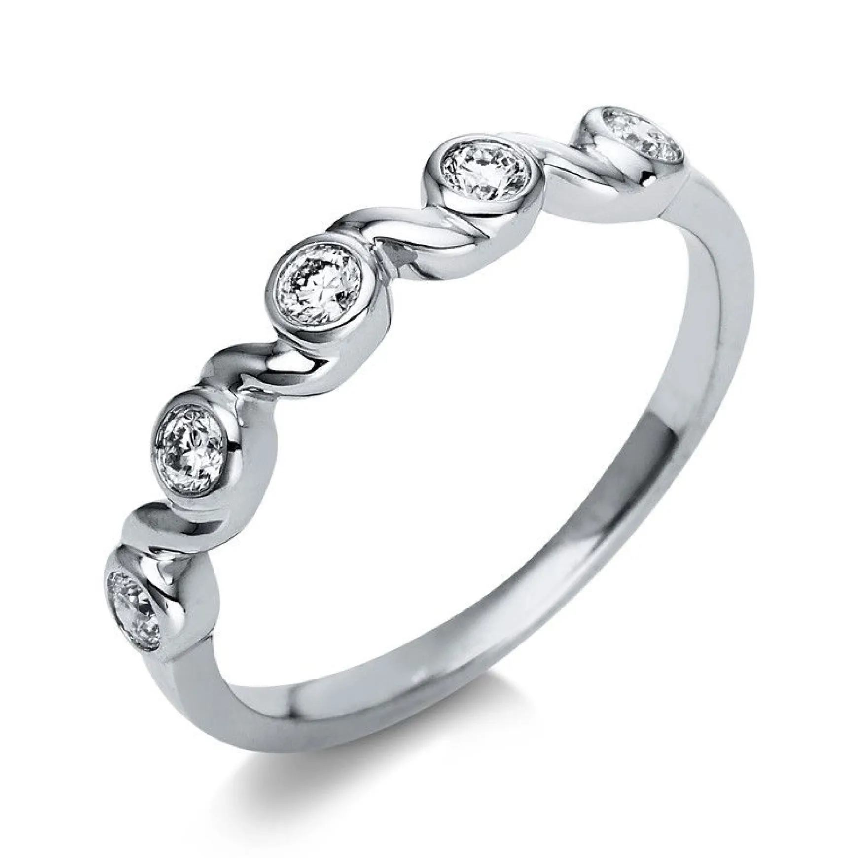 Diamantringe haben in der Schmuck-Welt einen ganz besonderen Status. Finden Sie jetzt Ihren Lieblings-Diamantring wie diesen Ring aus 750/18K Weissgold mit einer Diamant-Steinfarbe: TW (TOP WEssELTON) Feines Weiss. Bestellen Sie hier Ihren Diamantring bequem online, unser Spezialisten Team steht Ihnen gerne zur Verfügung. Allgemeine Produktinformation: Ring aus 750/18K Weissgold mit 5 Diamant Steinen und 0.2 Karat. Schliffform: Brillantschliff, Steinreinheit: SI