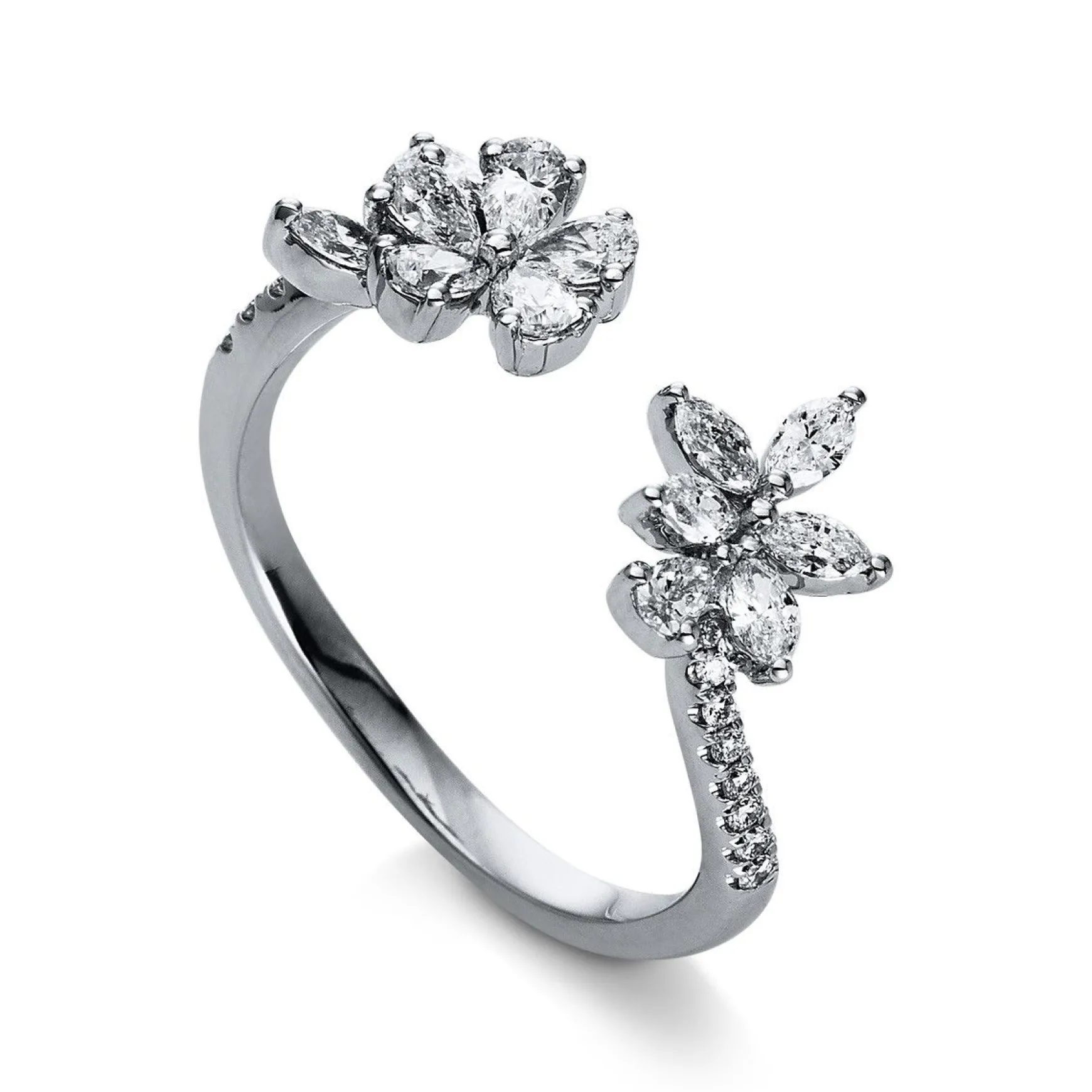 Ring 18 kt WG, 6 Tropfen 0,36 ct, TW-si, 7 Navette 0,31 ct, TW-si, 15 Brillanten 0,08 ct, TW-si, Weite:54