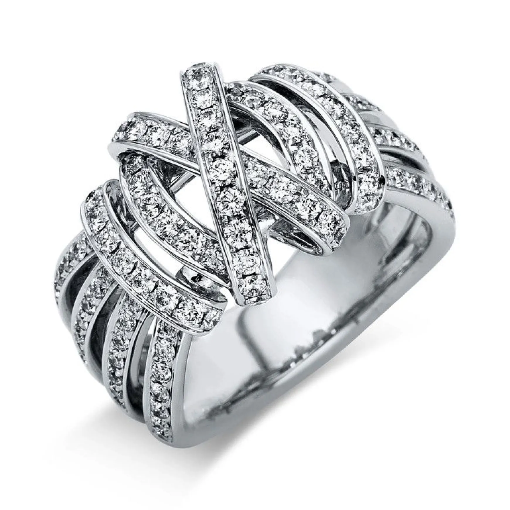 Ein Diamantring am Fingerring zu tragen ist für eine Frau ein sehr emotionaler Moment und wird mit schönen Erinnerungen verbunden. Finden Sie jetzt Ihren Lieblings-Diamantring wie diesen Ring aus 750/18K Weissgold mit einer Diamant-Steinfarbe: TW (TOP WEssELTON) Feines Weiss. Gerne unterstützt Sie unser Schmuck-Spezialisten Team bei der Auswahl des Diamantrings. Kontaktieren Sie uns jetzt oder sichern Sie sich gleich Ihren Diamantschmuck bequem online. Allgemeine Produktinformation: Ring aus 750/18K Weissgold mit 109 Diamant Steinen und 1.2 Karat. Schliffform: Brillantschliff, Steinreinheit: VSI