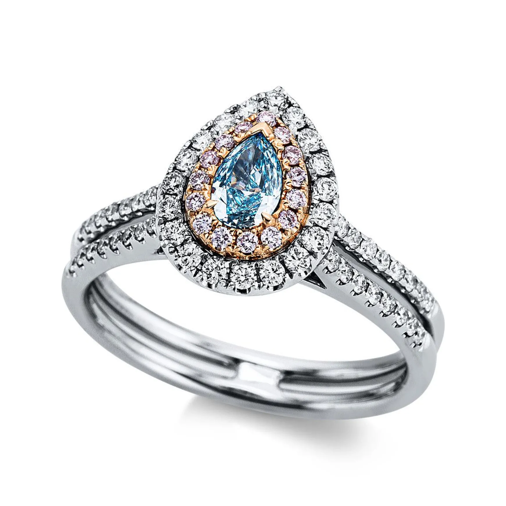 Ring 18 kt WG+RG „GIA6345189738“, 51 Brillanten 0,36 ct, TW-si, 1 Tropfen 0,26 ct, blau, 15 Brillanten 0,08 ct, pink, Weite:51,5