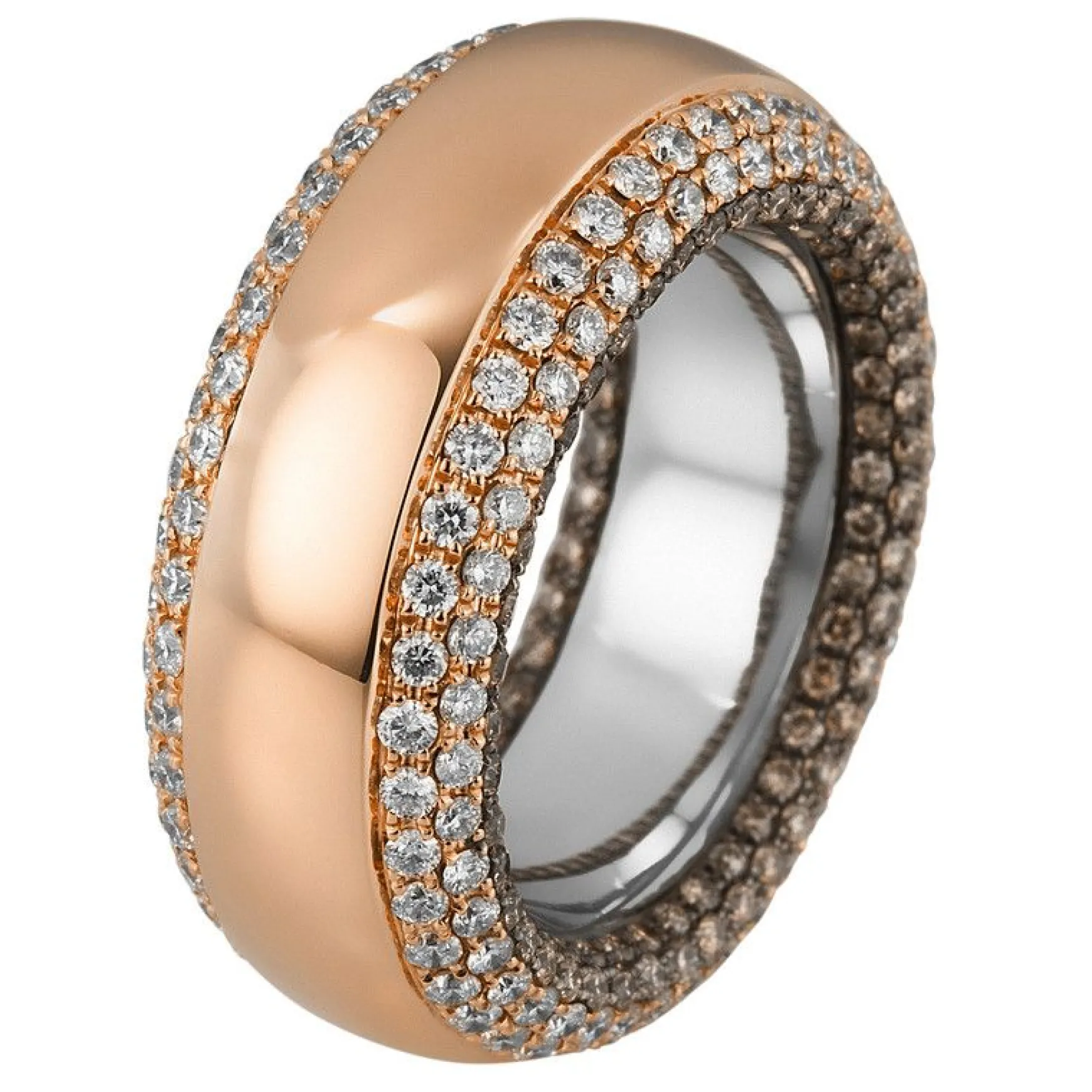 Diamantringe, ob in Gelbgold, Weissgold, Roségold oder Platin, haben stets ihren eigenen Charakter. Diamantringe entdecken Sie ganz einfach und bequem in unserem Schmuck Shop und bestellen oder verschenken Schmuck wie diesen Ring aus 750/18K Weissgold/Rotgold mit einer Diamant-Steinfarbe: TW (TOP WEssELTON) Feines Weiss. Diamantschmuck jetzt bei MUAU im Online Schmuck Shop sichern. Allgemeine Produktinformation: Ring aus 750/18K Weissgold/Rotgold mit 344 Diamant Steinen und 2.96 Karat. Schliffform: Brillantschliff, Steinreinheit: VSI