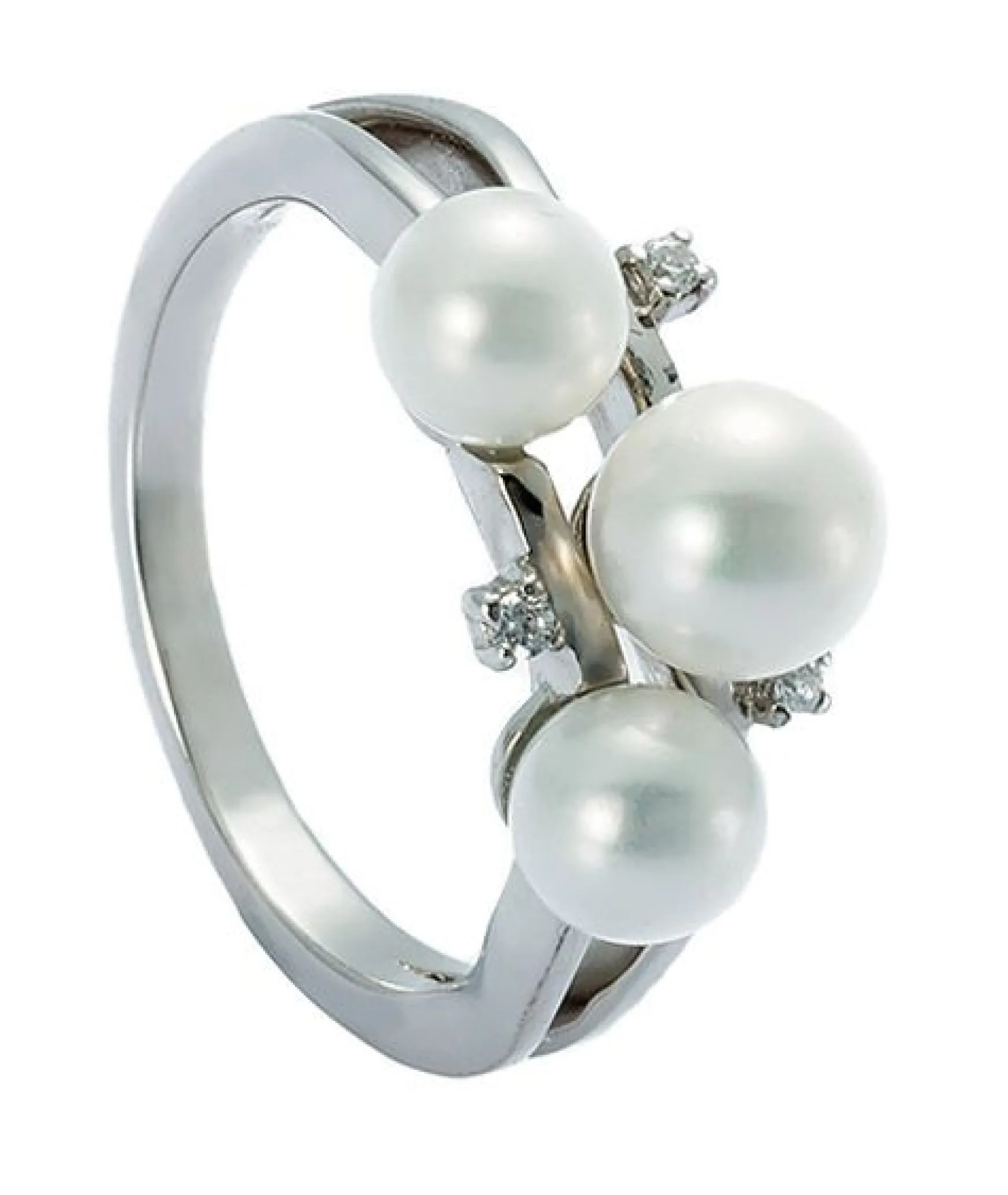 Bezaubernder Fingerring, der aus wertvollem Sterling Silber 925 erschaffen wurde. Der Ring teilt sich nach vorne hin in zwei zierliche Ringe, die von drei feinen klaren Zirkonia geziert werden, die dem Schmuckstück ein Funkeln schenken. Gekrönt wird das Design durch drei schimmernde Süsswasser-Zuchtperlen, die ihren Platz versetzt auf dem Schmuckstück finden und ihr elegantes Flair verbreiten – Inspiriert von der Schönheit vergangener Epochen! Die perfekte Wahl für edle Anlässe oder um in den Alltag einen Hauch Eleganz zu bringen.