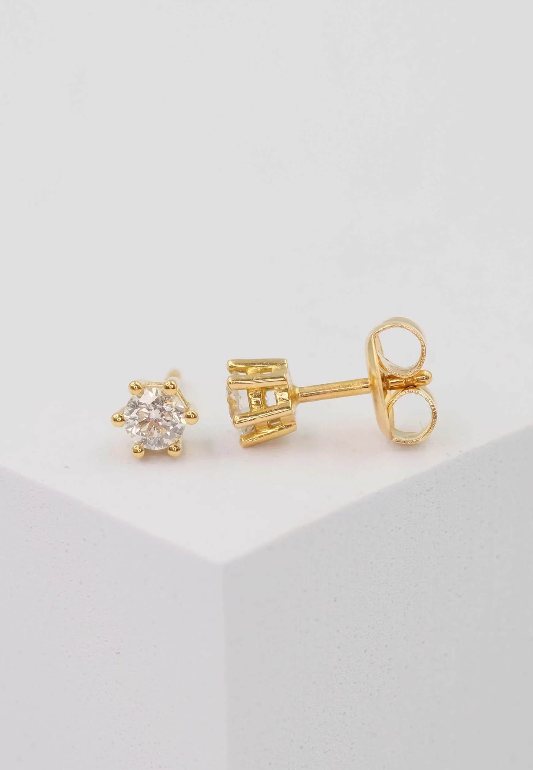 Solitär Ohrstecker 6-Griff-Fassung Gelbgold 750 Brillanten 0.50ct. 6.5mm