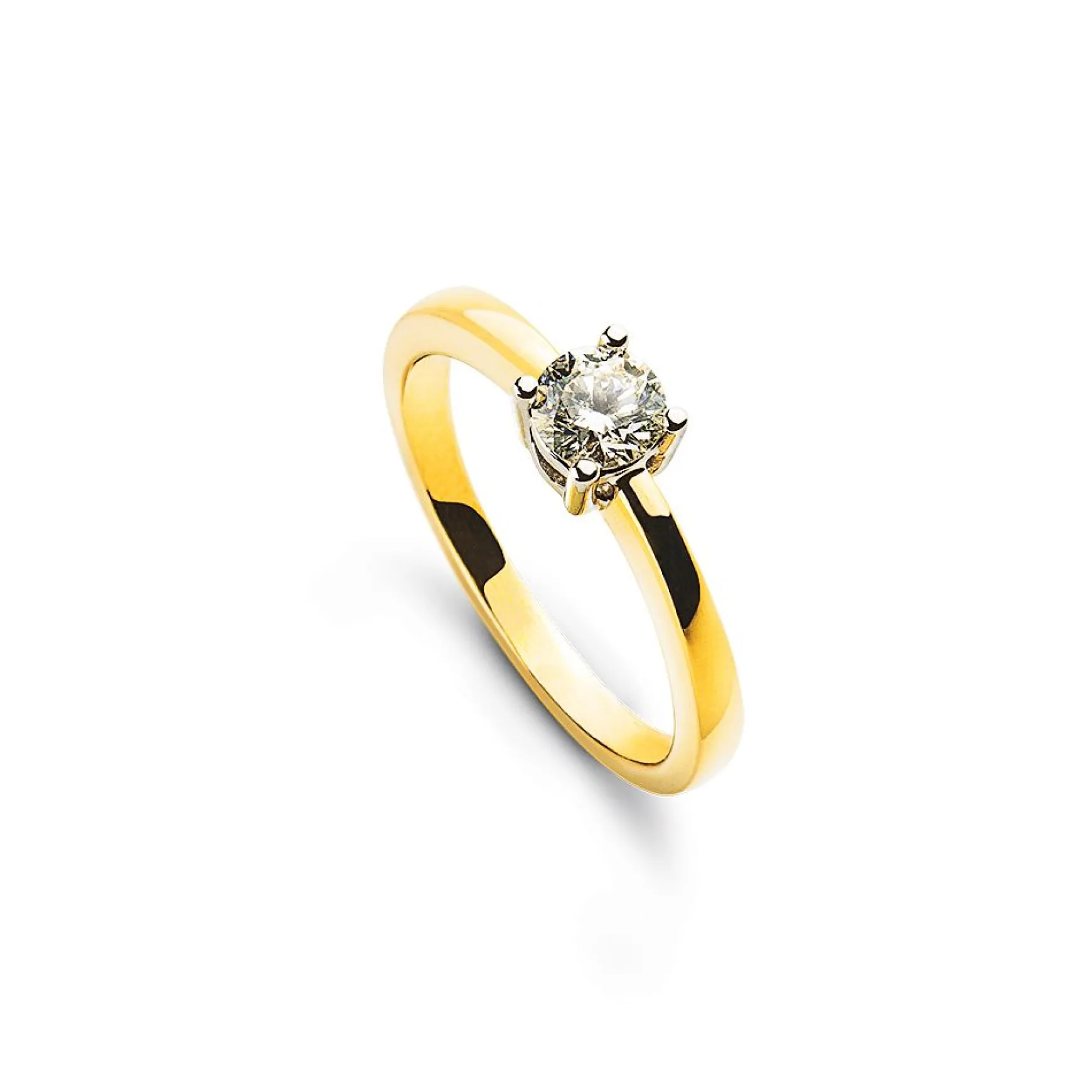 Solitär Ring 4-Griff-Fassung Gelbgold 750, Brillanten 0.33ct. Fassung Weissgold 750