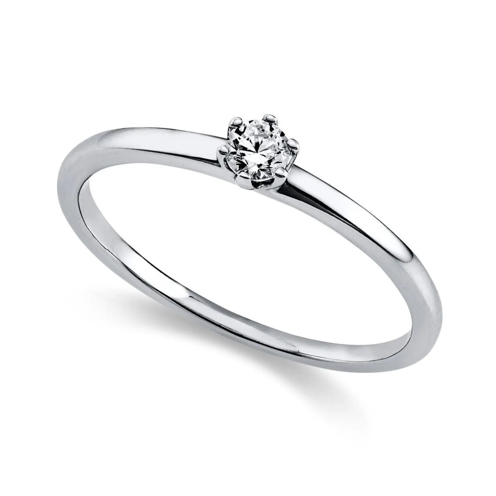Solitär Ring 585/14K Weissgold Diamant 0.1ct.