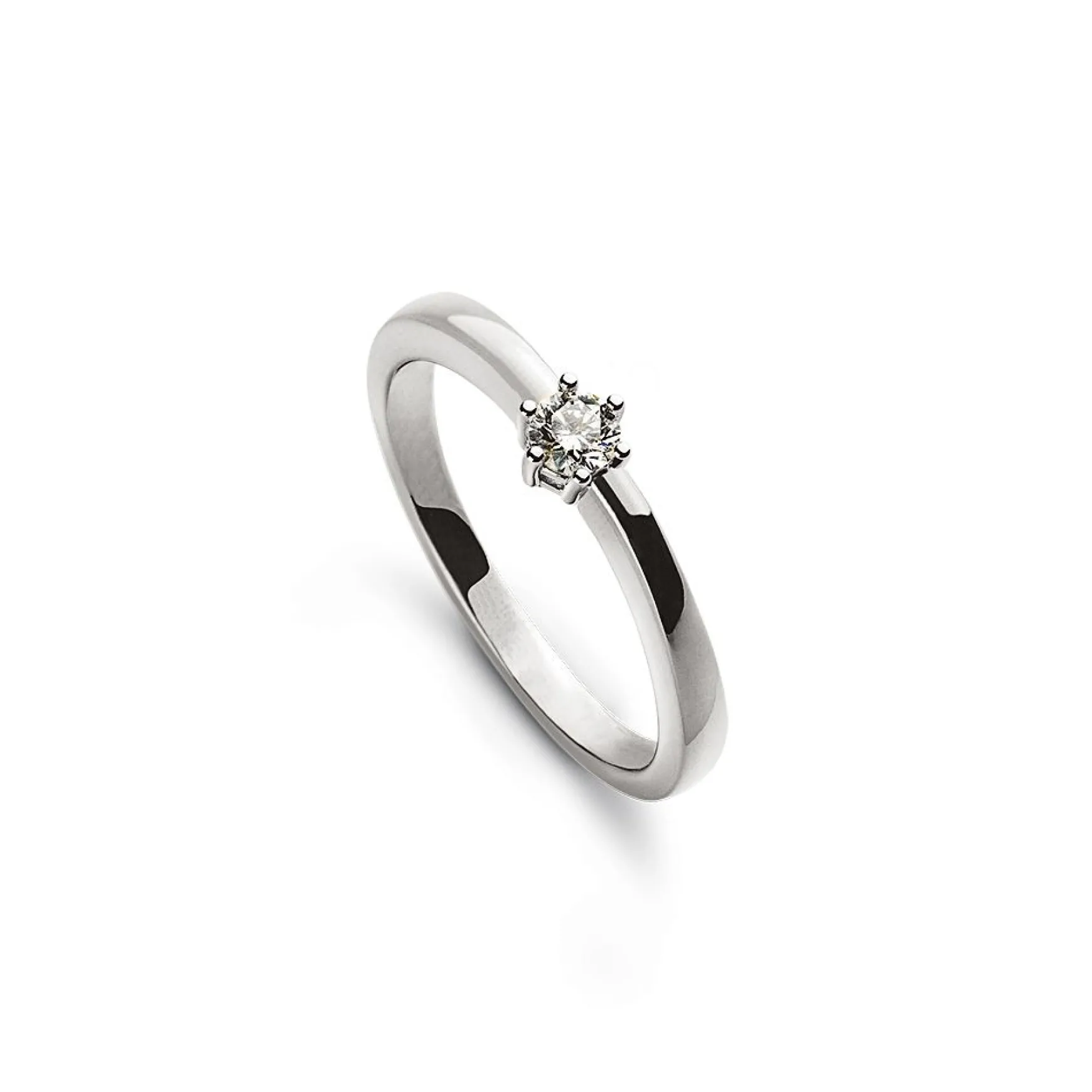 Solitär Ring 6-Griff-Fassung Weissgold 750, Brillant 0.10ct.