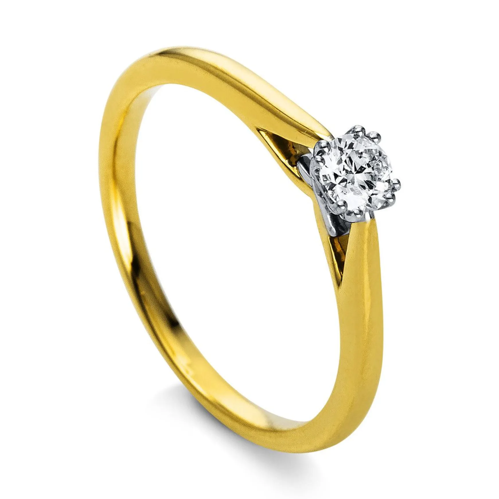 Solitär Ring 750/18K Weissgold/Gelbgold/Platin 950 Diamant 0.21ct.